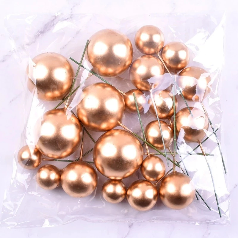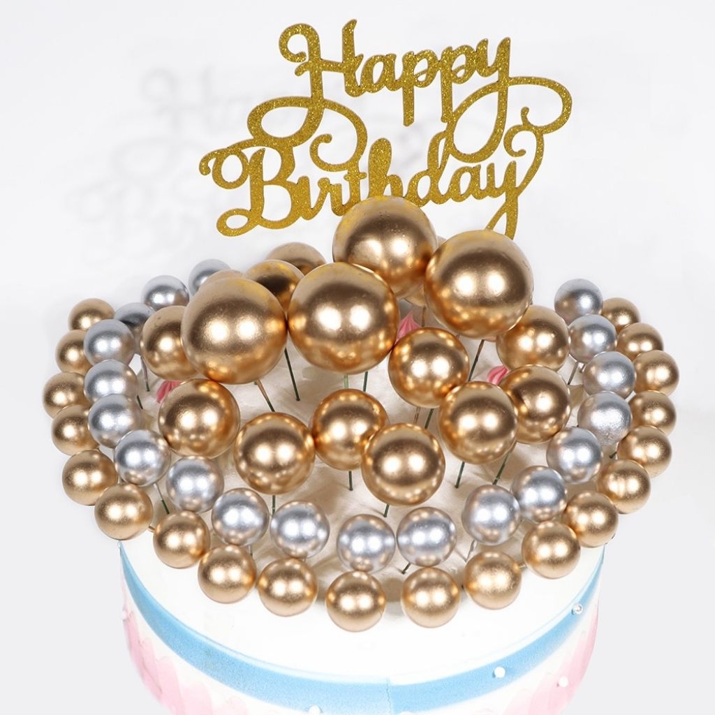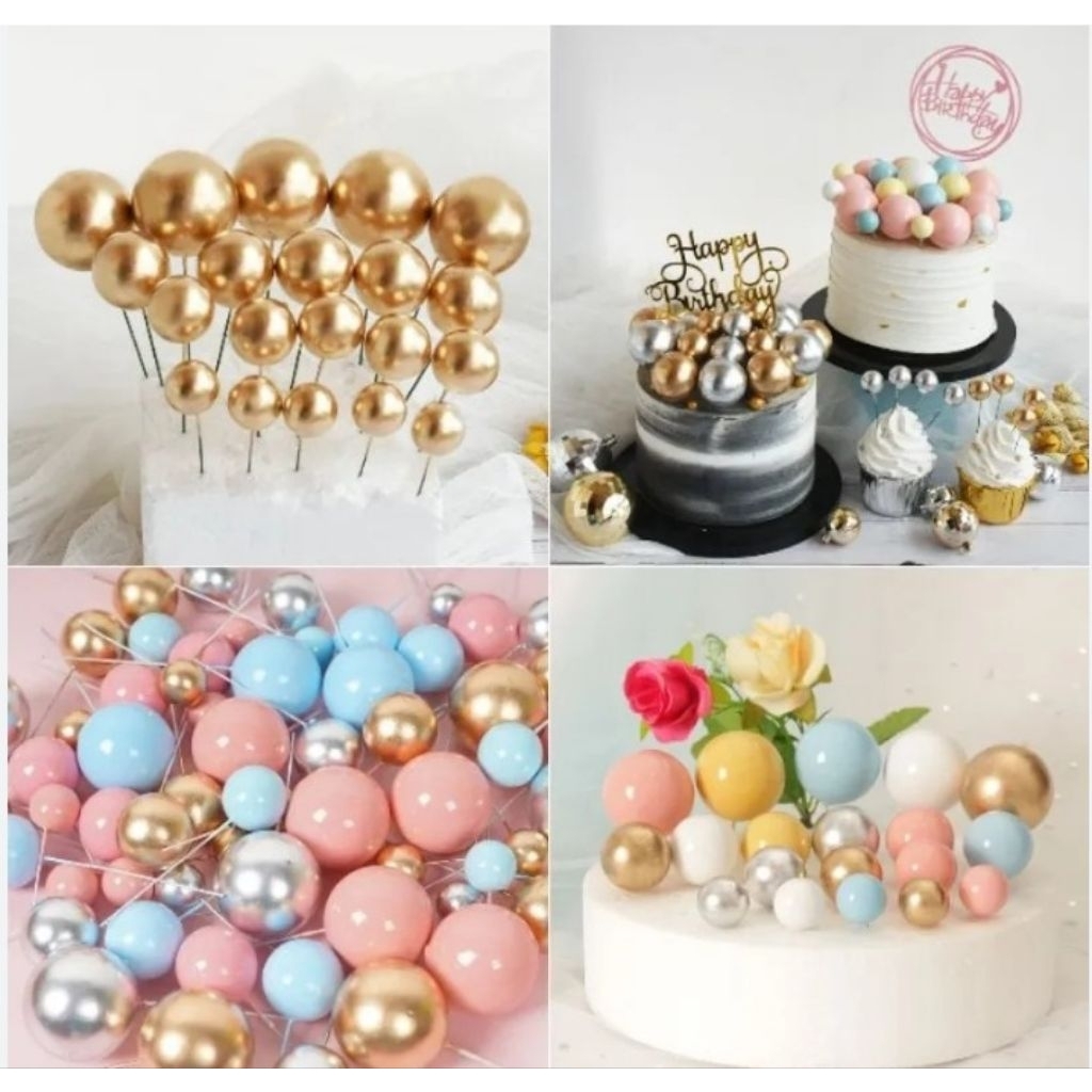 TOPPERCAKE51 Isi 20 Topper Bola Warna-warni Gold & Silver / Hiasan Kue Elit & Mewah / Topper Bola