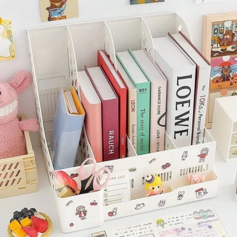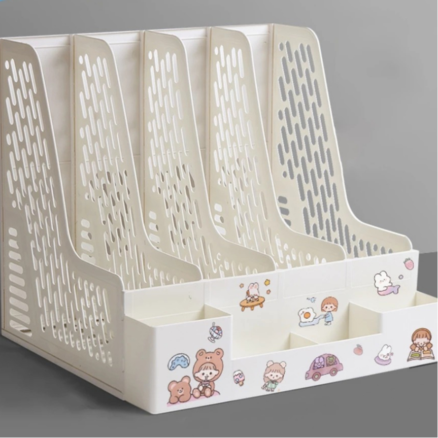 TOREDO Rak Buku Minimalis Aesthetic Tempat Pena + Sticker / Rak Penyimpanan Desktop Organizer Box File