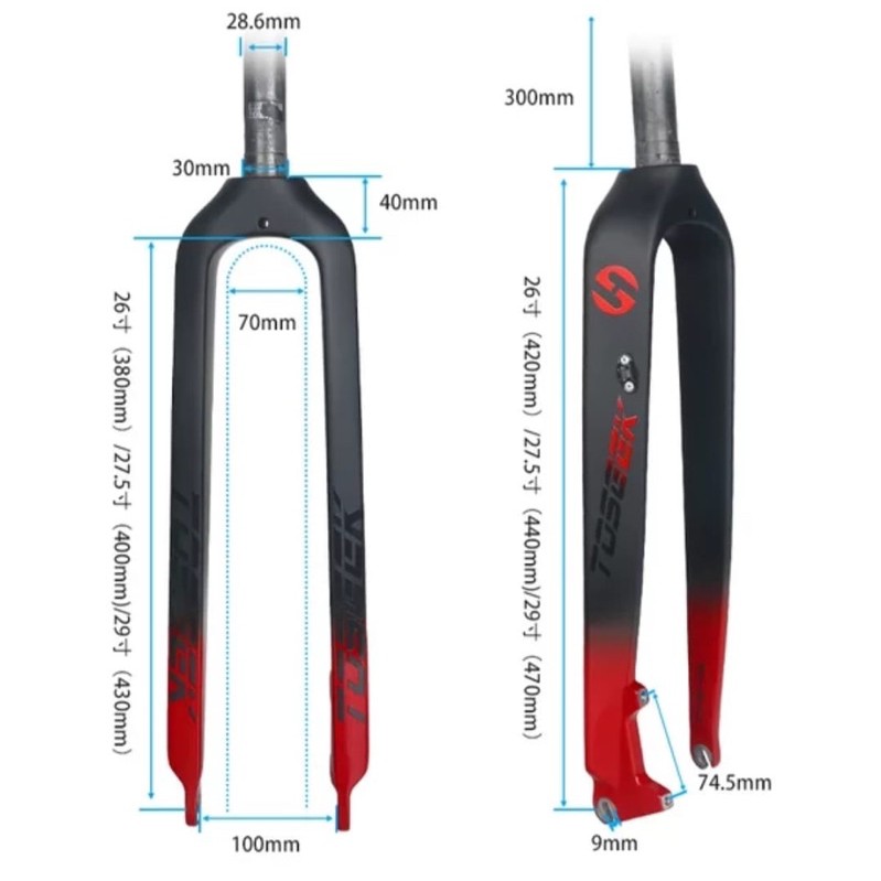 TOSEEK Garpu/Fork Sepeda Carbon Fiber 3K Gloss Matte Untuk Sepeda 26/27.5/29 inch