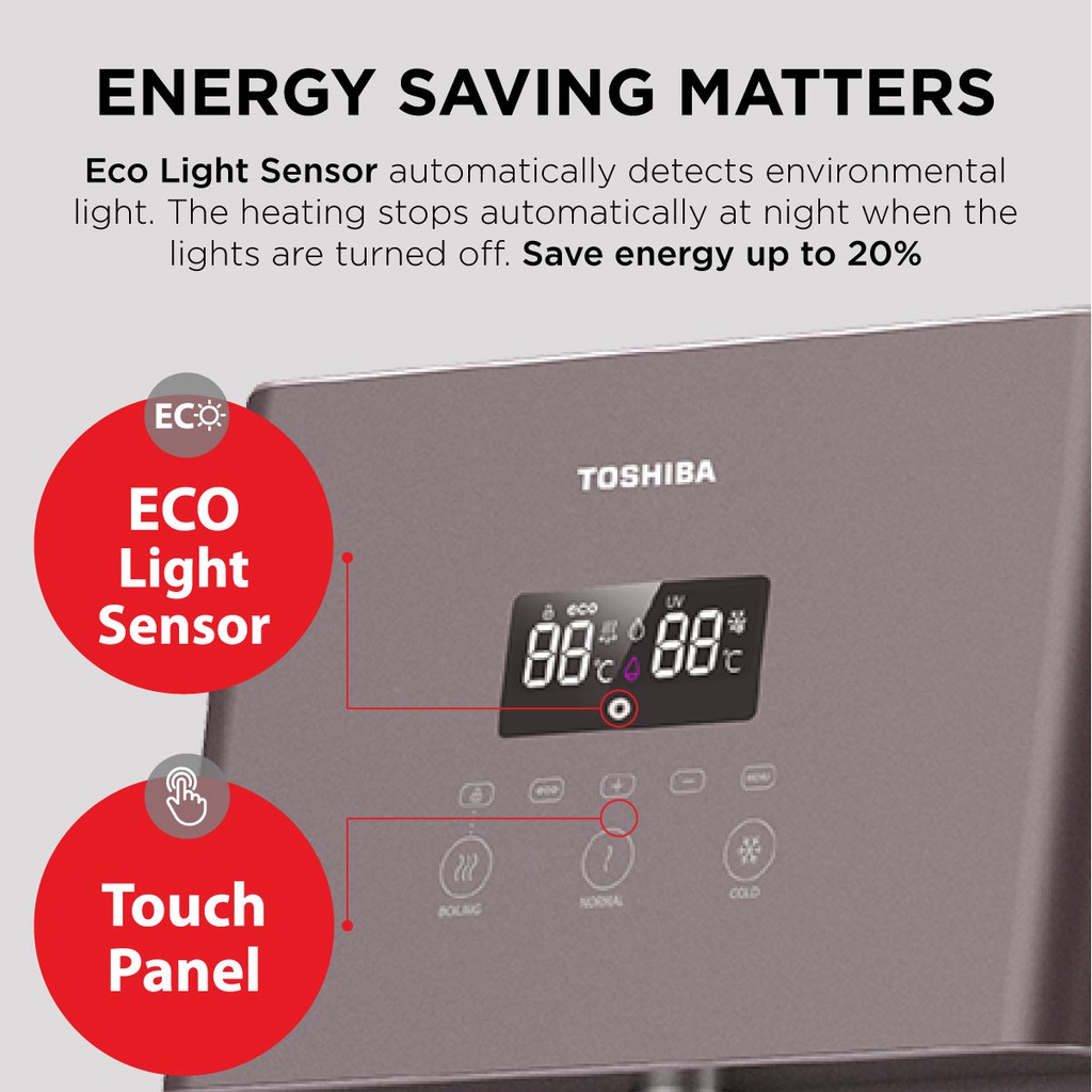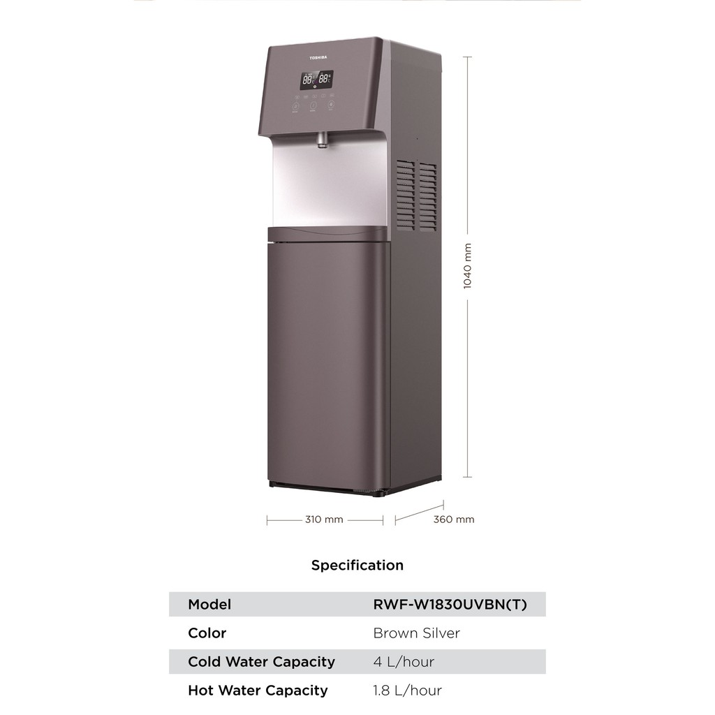 TOSHIBA Dispenser Air Galon Bawah RWF-W1830UVBN-T - Low Watt - LED Display (Brown Silver)