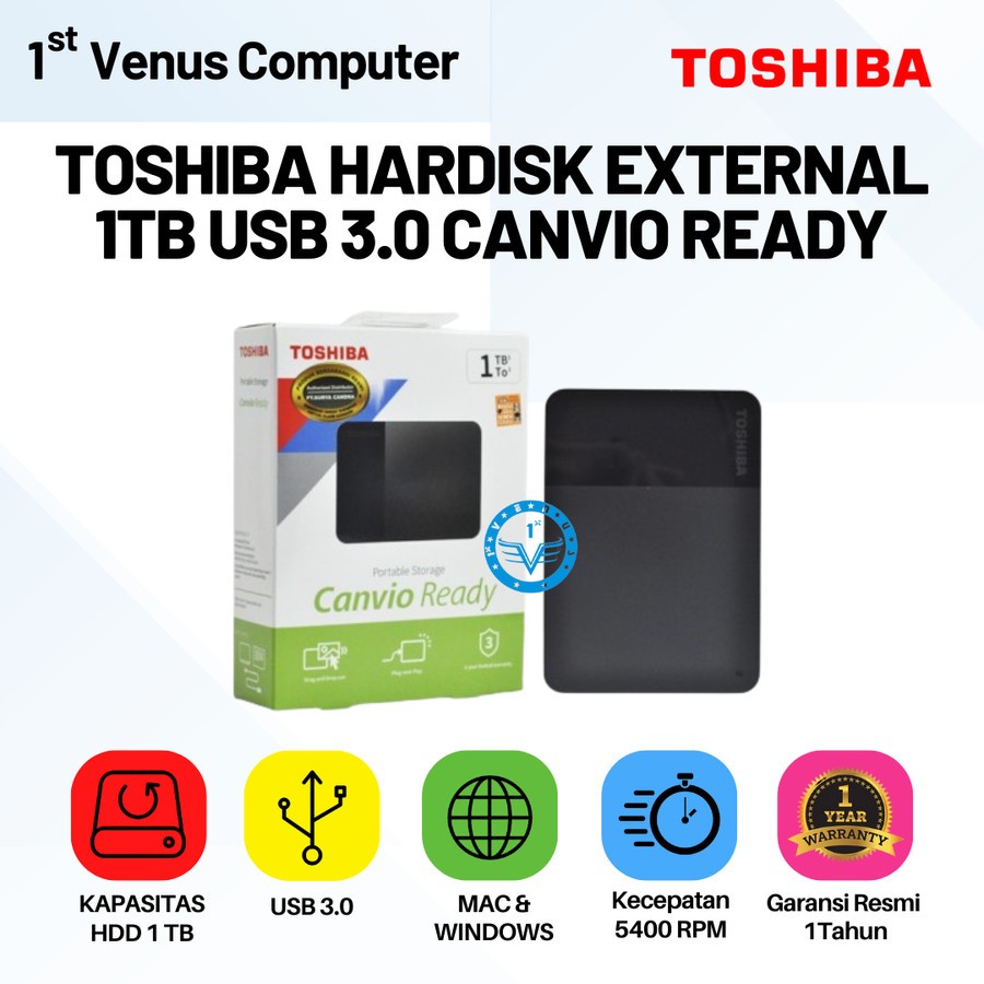 TOSHIBA HARDISK HDD EKSTERNAL EXTERNAL 1TB USB 3.0 CANVIO READY / HDD05-TOS / BERGARANSI RESMI ORIGINAL BUKAN 2TB, 4TB