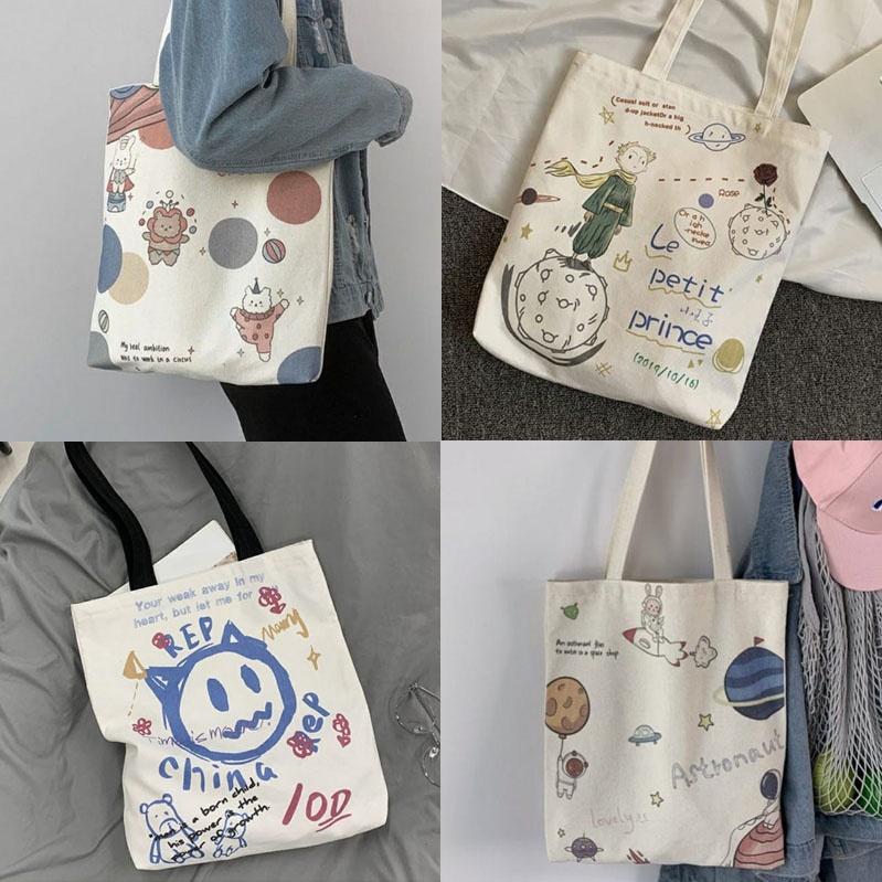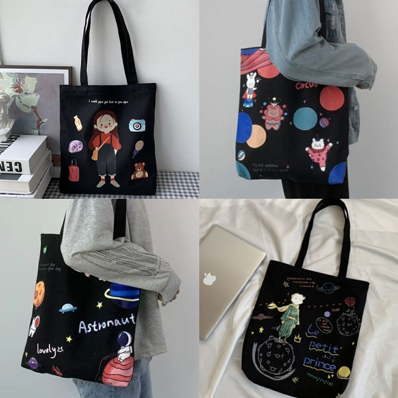 TOTE BAG WANITA KULIAH TAS BELANJA LIPAT TEBAL KAIN PASAR AESTHETIC VINTAGE KANVAS HITAM TOTEBAG SEKOLAH