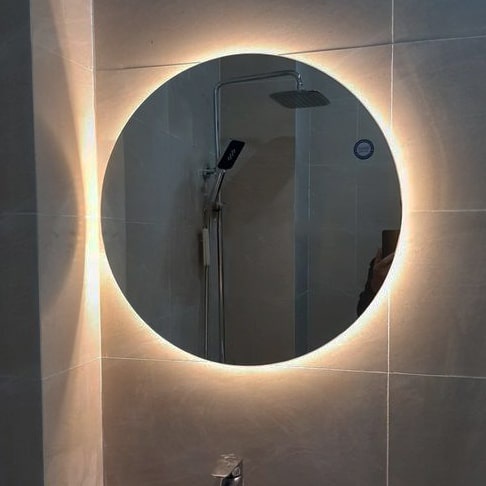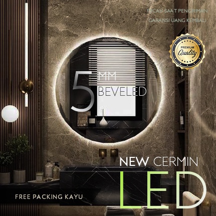 TOUCHSCREEN CERMIN LED ROUND LED 5 MM BEVEL Bulat Kaca Cermin Smart Mirror LED