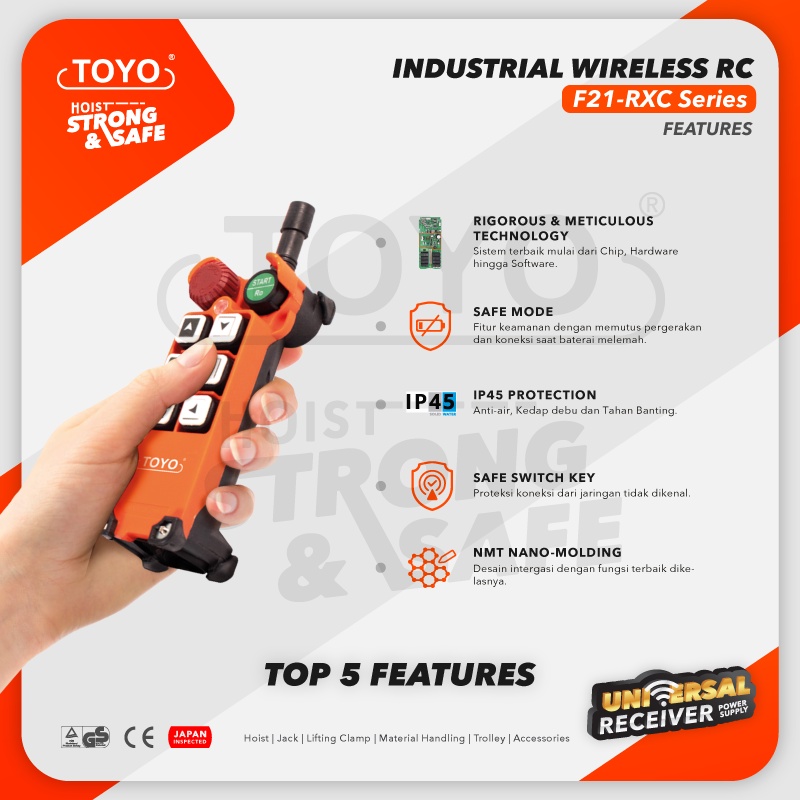 TOYO Industrial Wireless Remote Control F21-RXC 18V-65V Hoist Crane