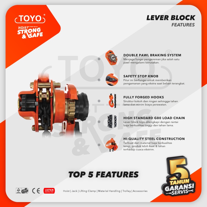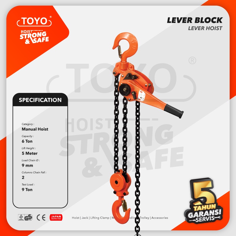 TOYO Lever Block / Lever Hoist 6 Ton x 5 Meter