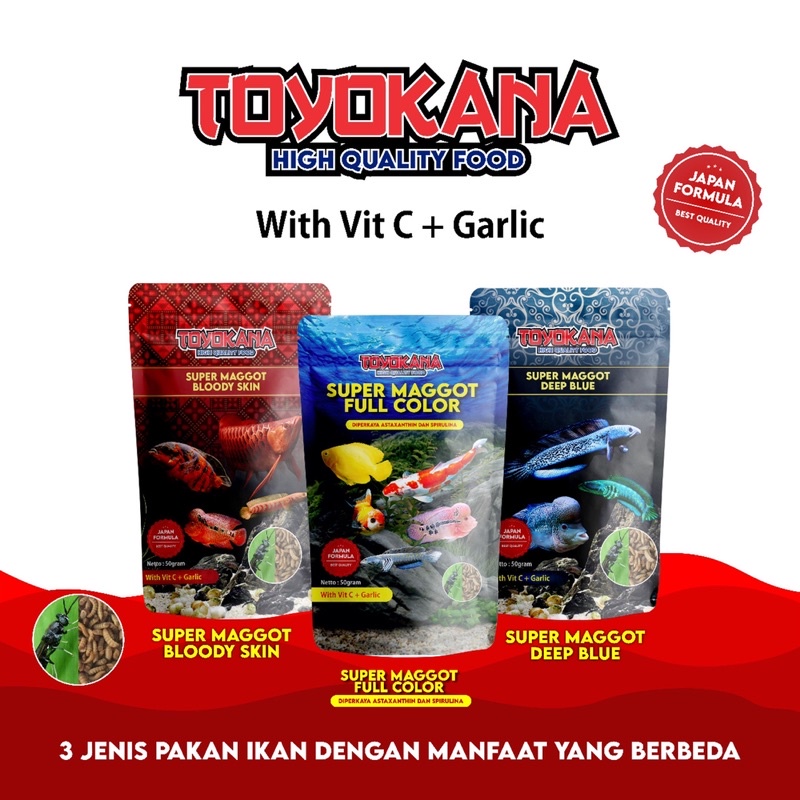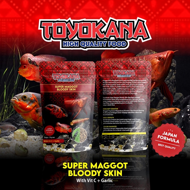 TOYOKANA SUPER MAGGOT BSF RED BLOODY SKIN PAKAN IKAN CHANNA MAGOT KERING 50GR