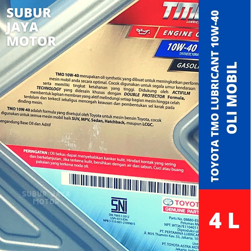 TOYOTA Oli Mesin TMO Lubricant SAE 10W-40 API SN Engine Oil Gasoline - 4L