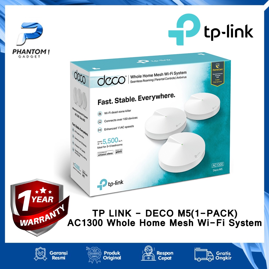 TP-LINK Deco M5 1pack AC1300 The Most Secure Whole-Home Mesh Wi-Fi System router Modem Wifi Internet