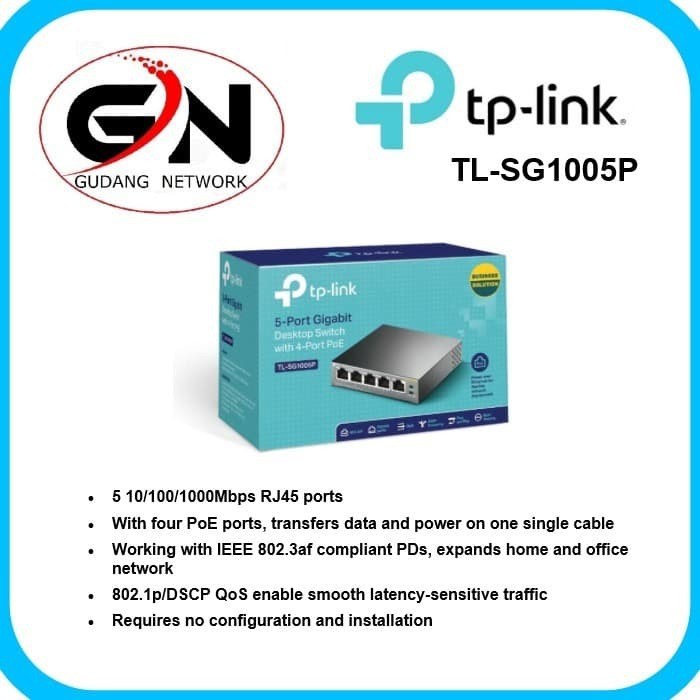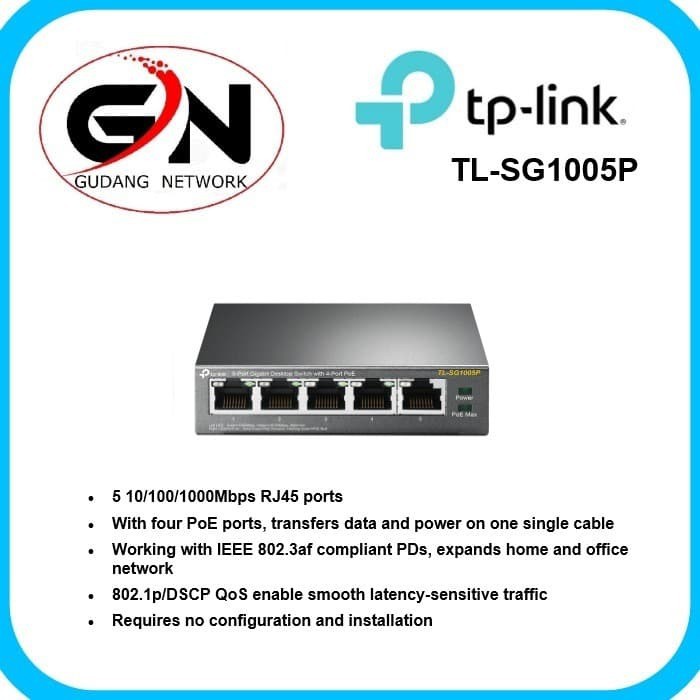 TP-LINK TL-SG1005P 5-Port Gigabit Desktop Switch with 4-Port PoE
