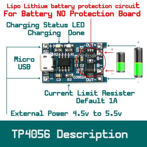TP4056 Charger Battery Micro usb Charging Modul 1A 5v dan Proteksi
