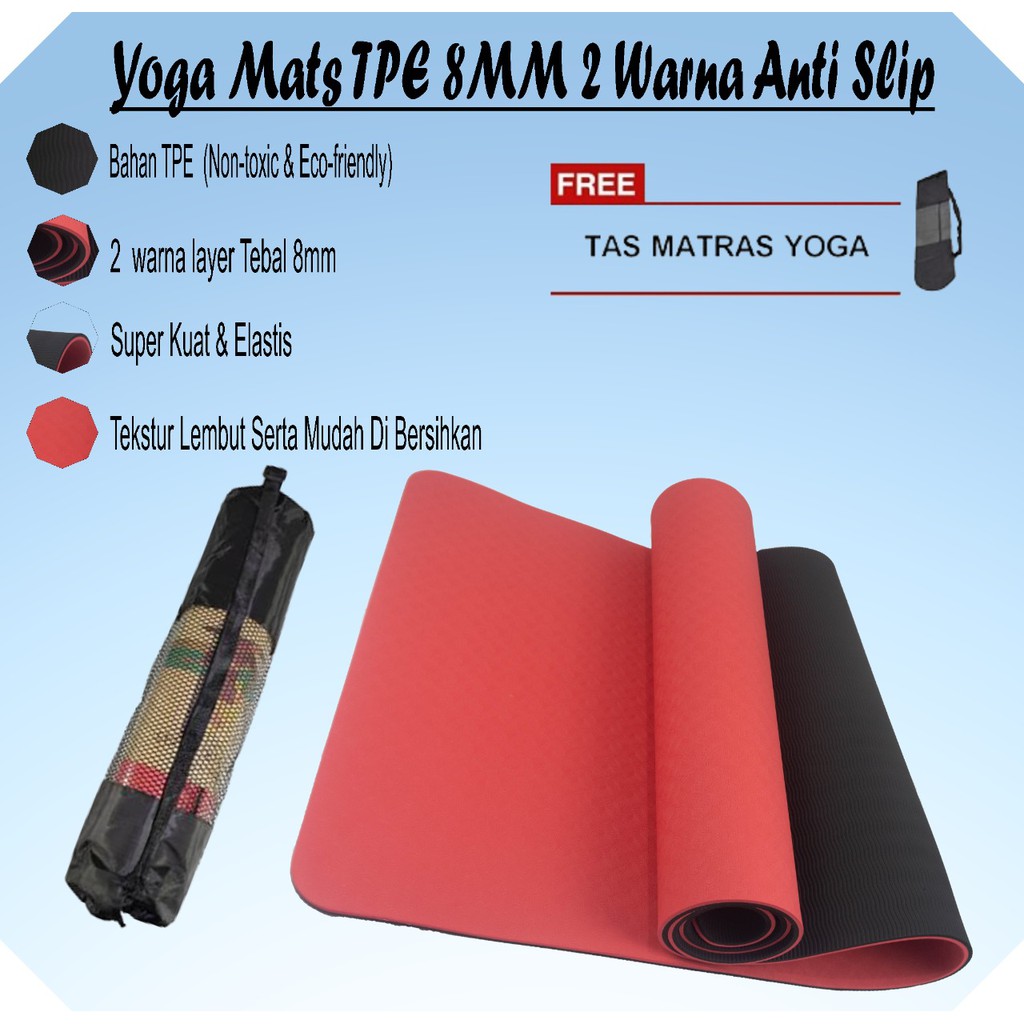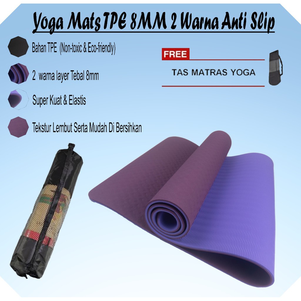 TPE ECO FRIENDLY KETEBALAN 8mm MATRAS YOGA ANTI LICIN, MENYERAP KERINGAT, 2 WARNA BERKUALITAS