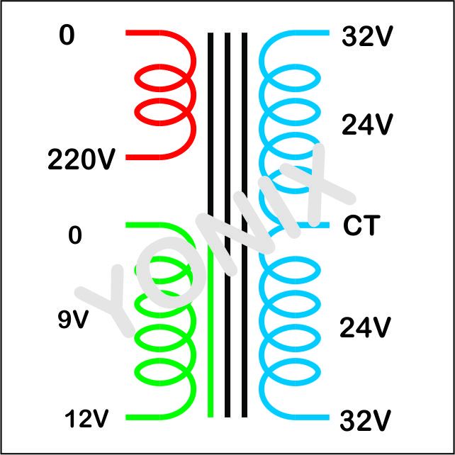 TRAFO Merk YONIX 5a KECIL 32V CT ( 100w ) TEMBAGA MURNI