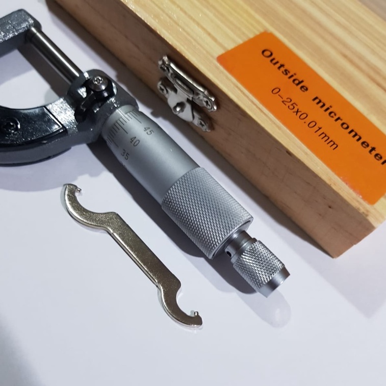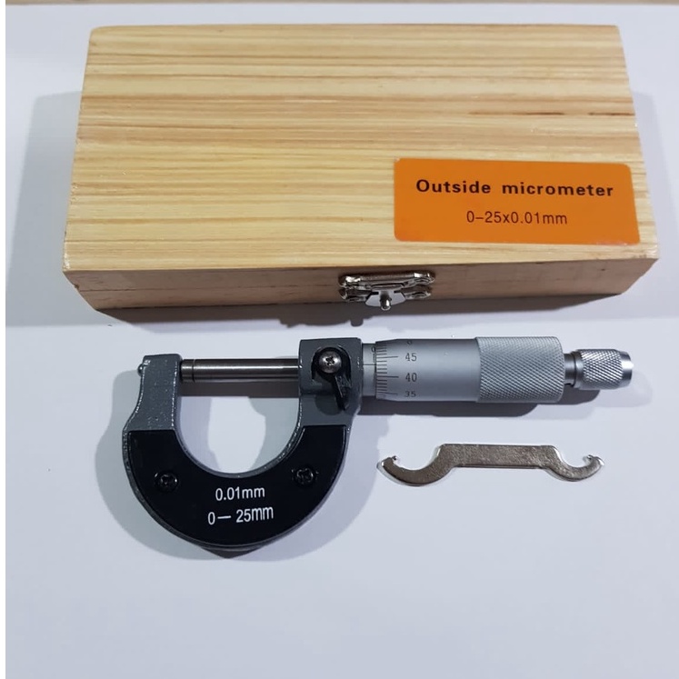 TRICEL Micrometer Mikro Micro Meter 0-25mm x 0.01mm - Mikrometer Luar Kotak Kayu 0 25 mm x 0.01 mm