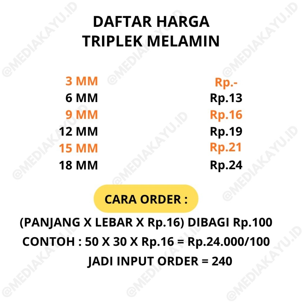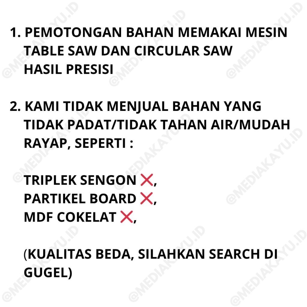 TRIMIL / TRIMIN / TRIPLEK MELAMIN PUTIH CUSTOM Ketebalan Papan 6, 9, 12, 15, 18MM