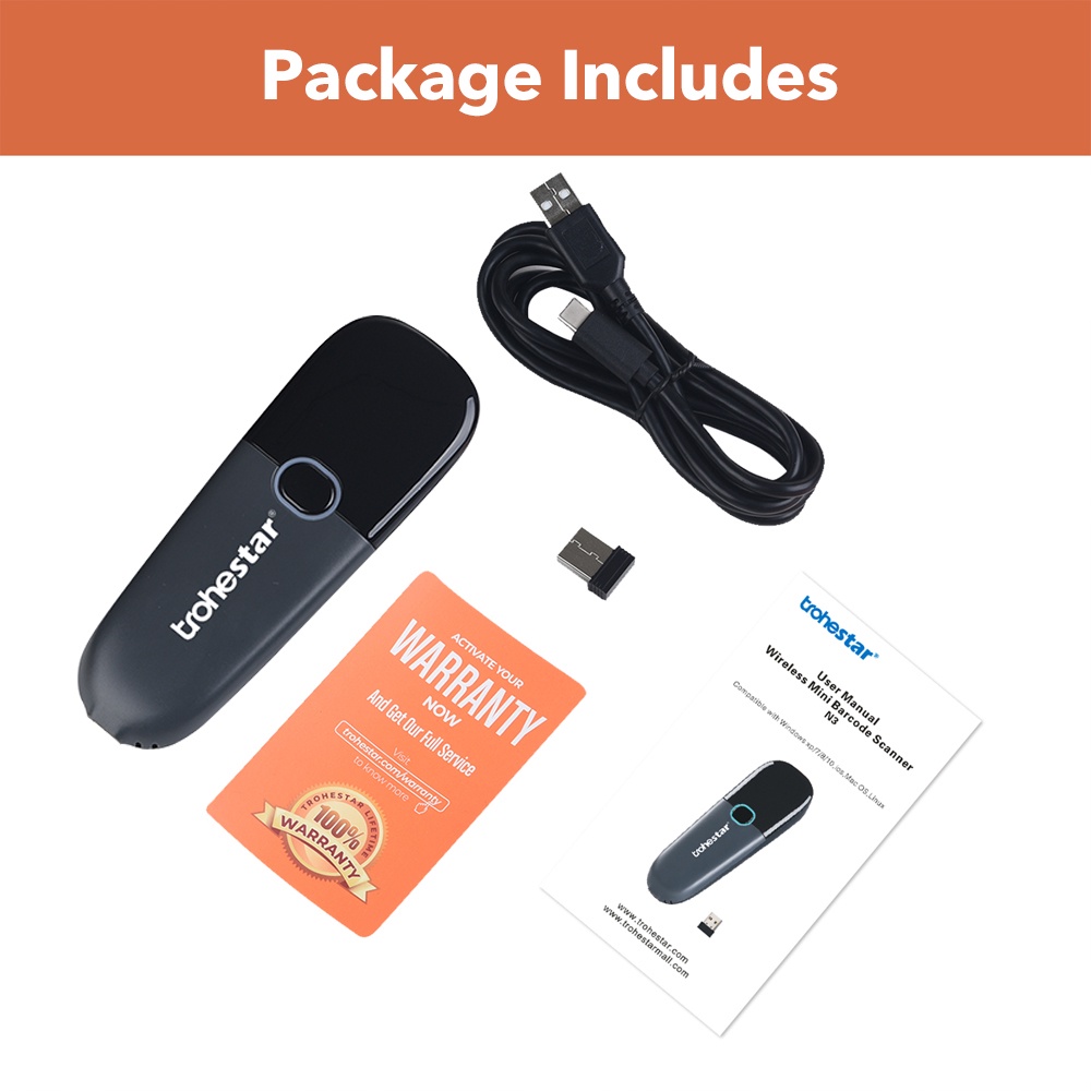 TROHESTAR N3 Mini Bluetooth Barcode Scanner USB 1D Barcode Scanner Automatic Bar Code Reader