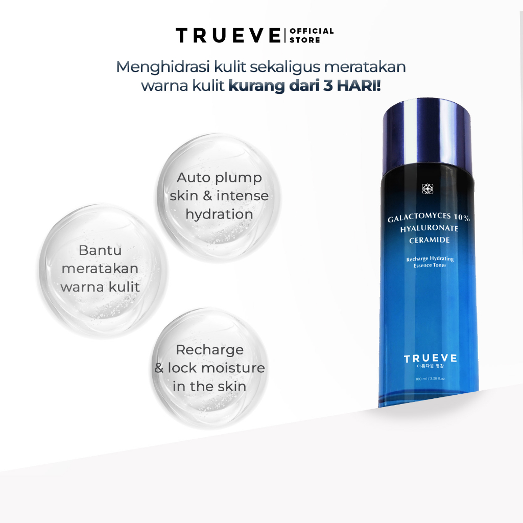 TRUEVE Recharge Hydrating Essence Toner (10% Galactomyces + Ceramide - Mencerahkan Menjaga Skin Barrier Menyegarkan Meratakan Warna Kulit Hidrasi Melembabkan Cocok Untuk Semua Kulit Wajah Aman untuk Bumil Busui)