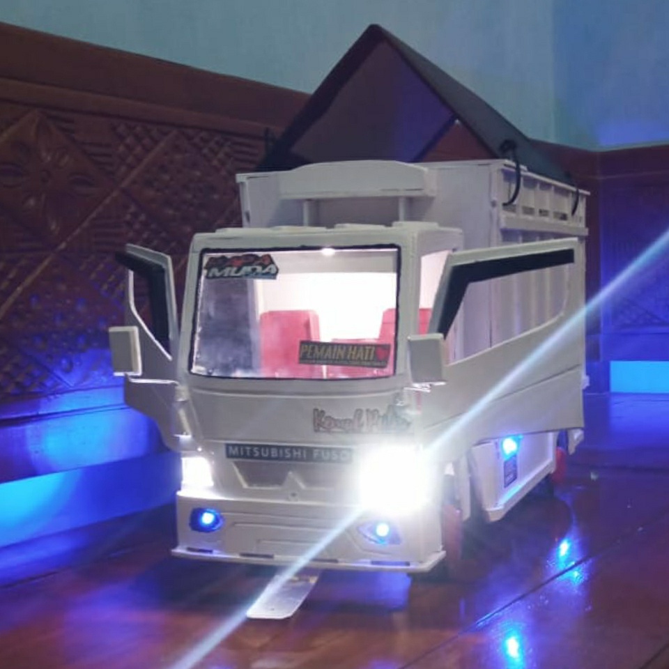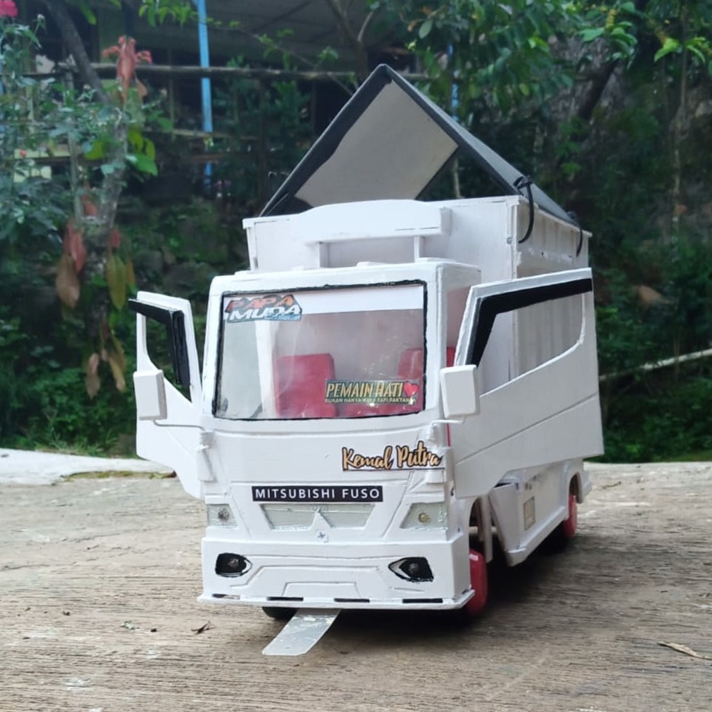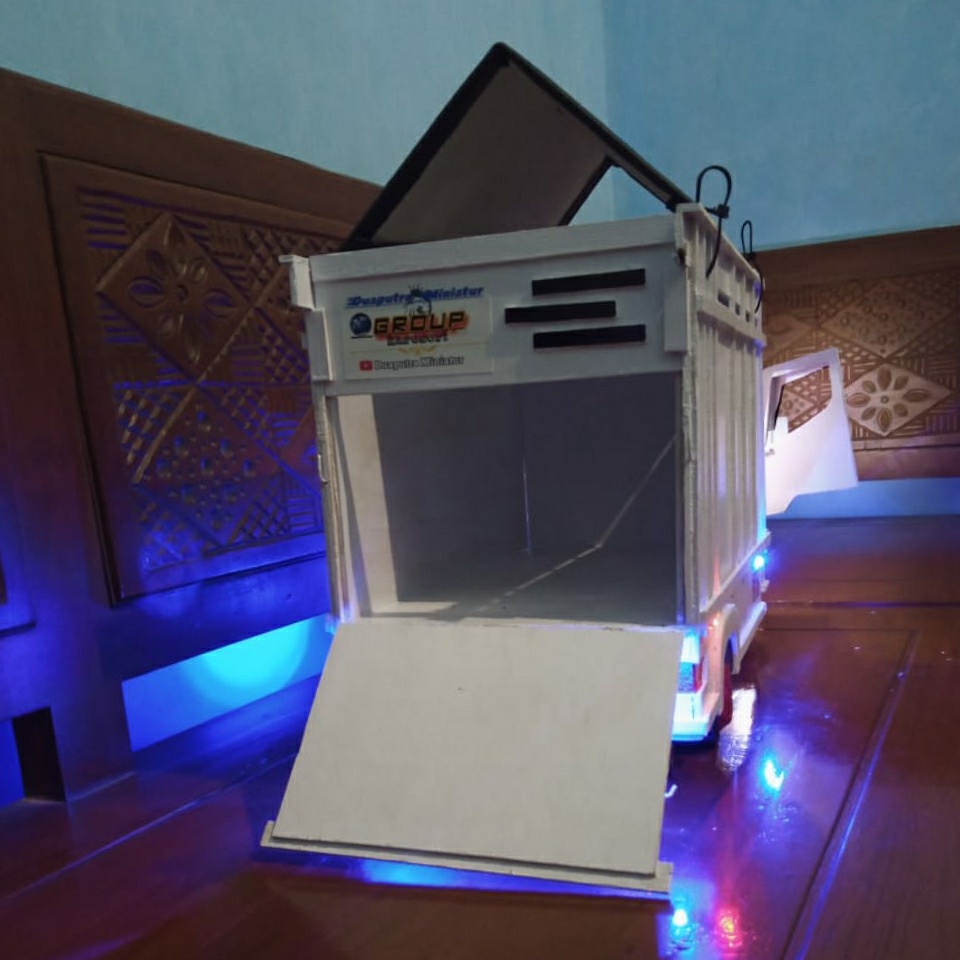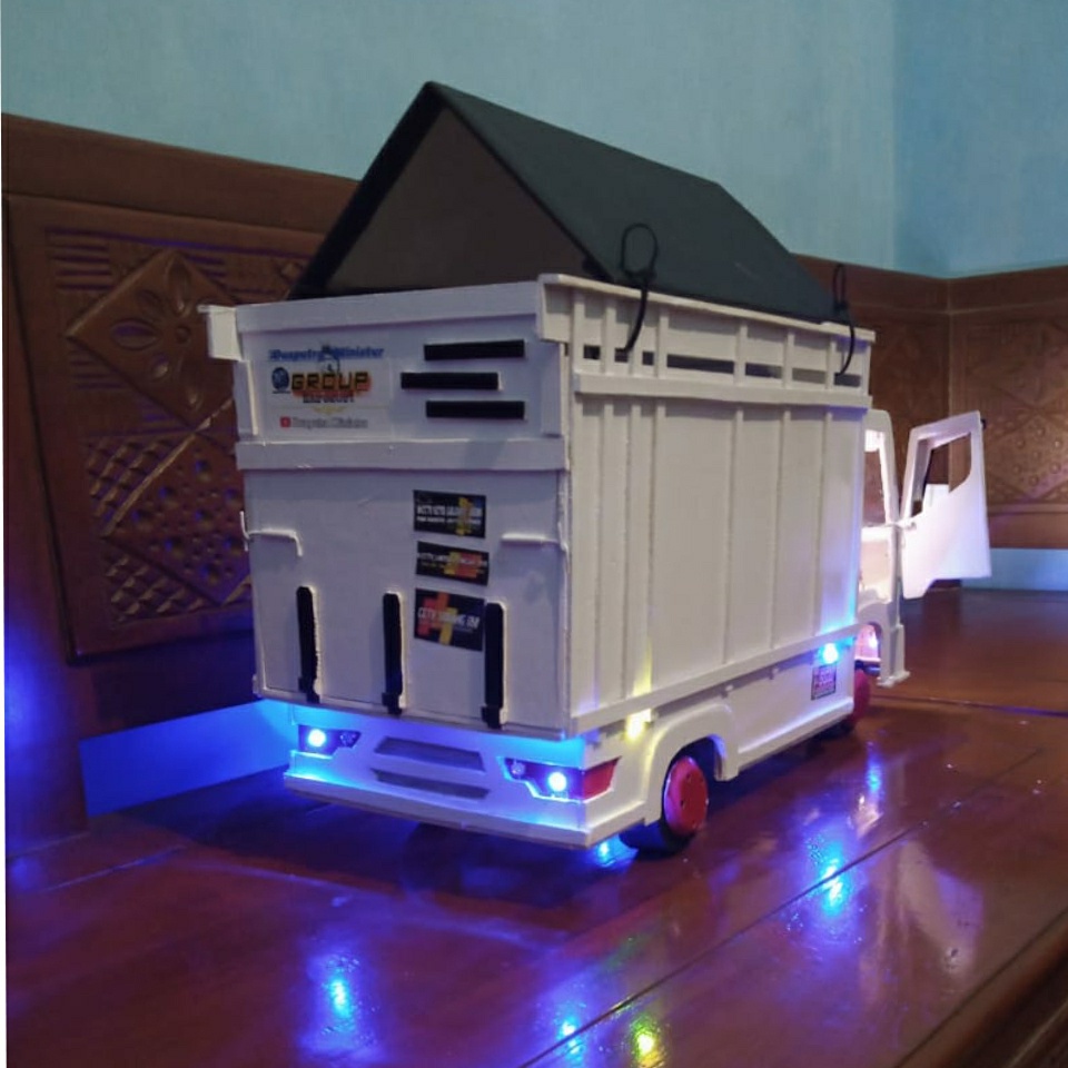 TRUK OLENG MINIATUR TRUK OLENG KAYU ASLI FULL LAMPU PINTU BUKAAN MINIATUR TRUK