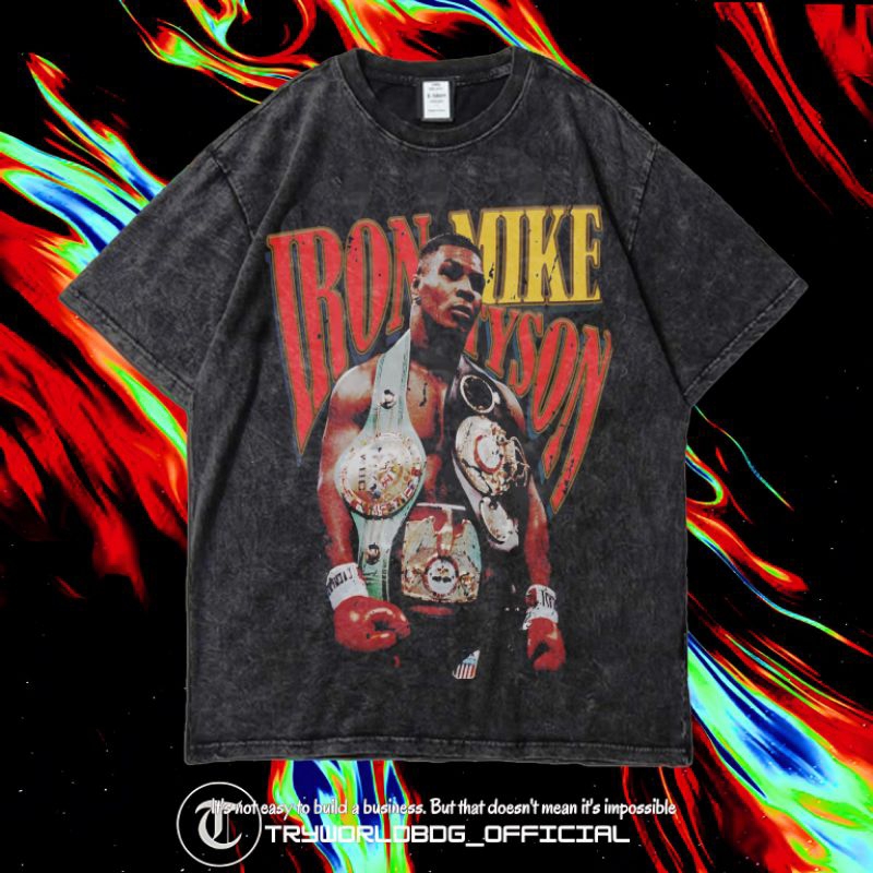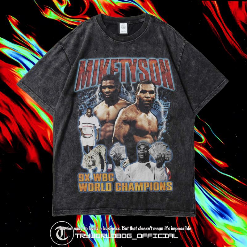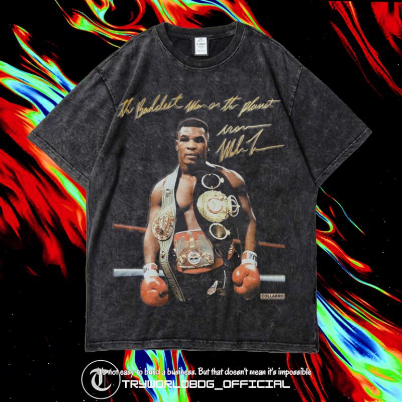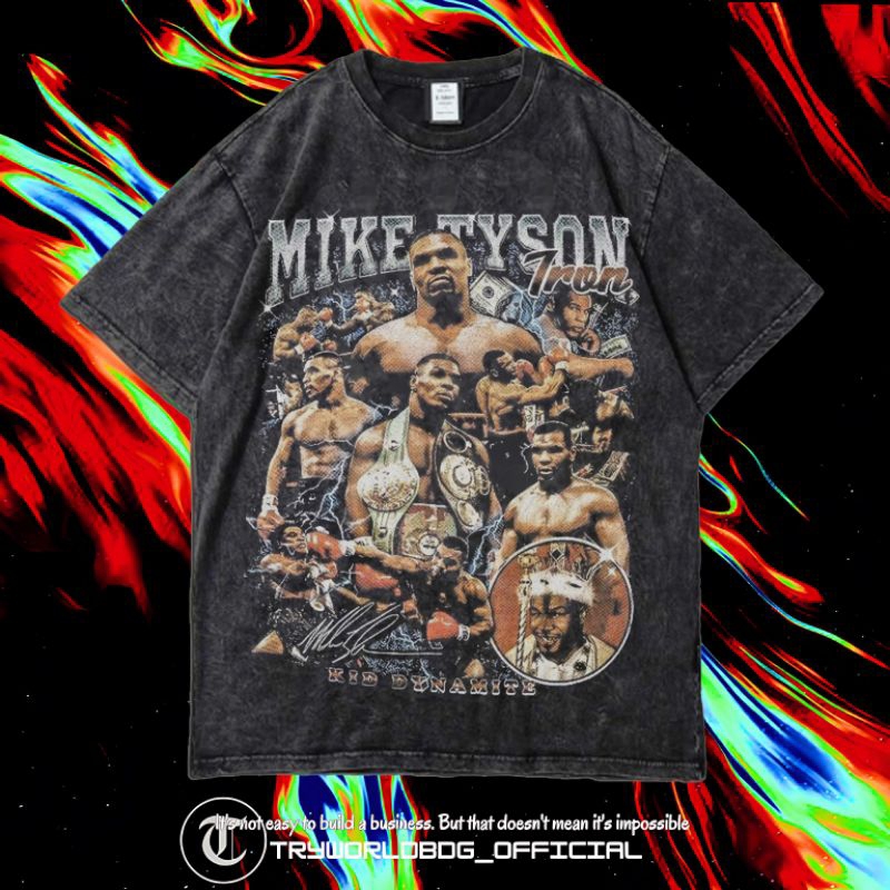 TRYWORLDBDG OFFICIAL "MIKE TYSON" KAOS OVERSIZED | KAOS WASHED | STONE WASH | OVERSIZED T SHIRT | KAOS MIKE TYSON KID DYNAMITE CHAMPIONS THE BADDES MAN ON THE PLANET WASHING VINTAGE TEE