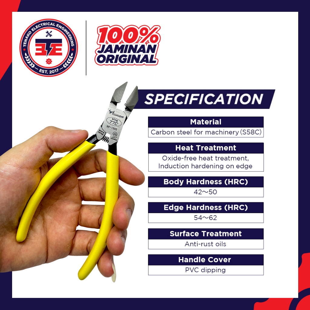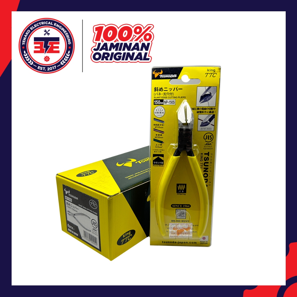 TSUNODA NP-150S KING TTC Slant Edge Cutting Pliers Tang Potong dan Kupas Original Jepang 150mm untuk Memotong dan Mengupas