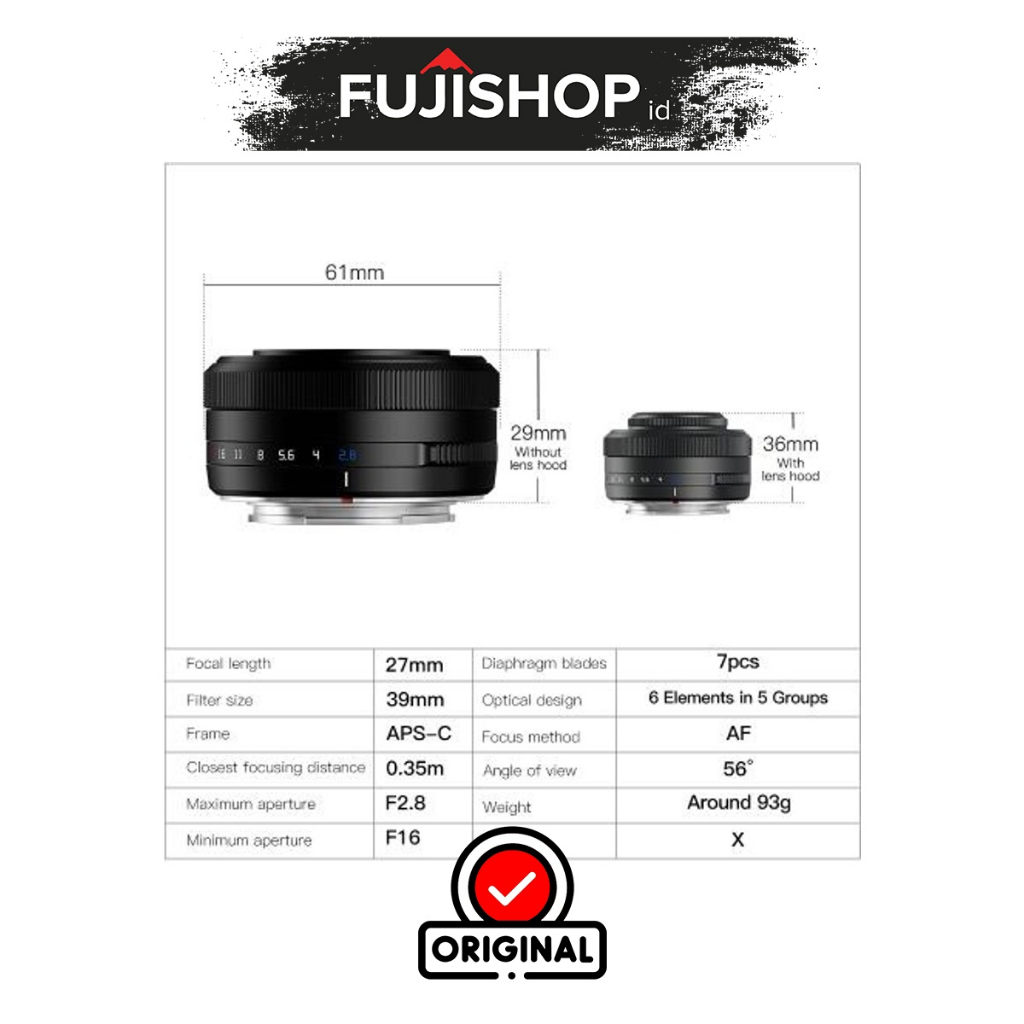 TTartisan 27mm f2.8 Fuji X Auto Focus Lens Garansi Resmi