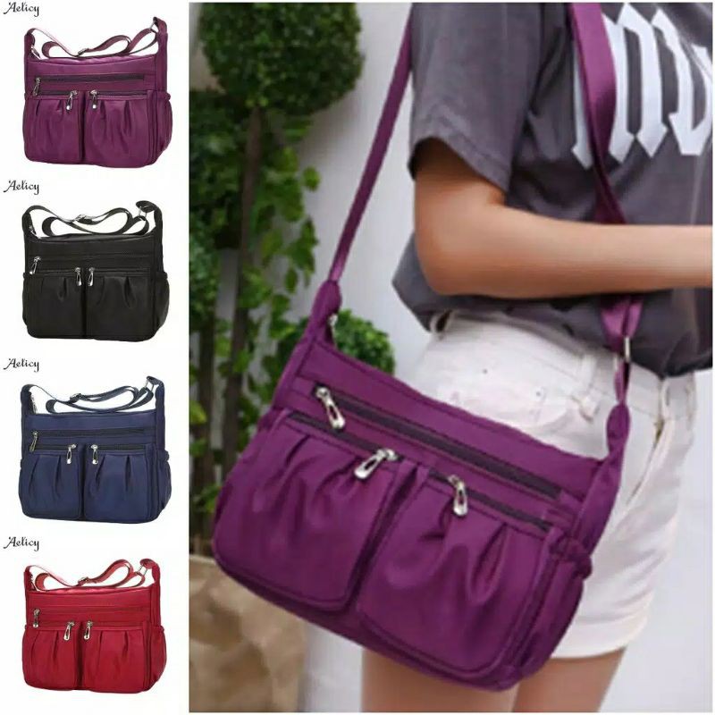 TUGUFAMILY - TAS SELEMPANG KOREAN WANITA RESLETING TIGA WARNA HITAM, MERAH, MAROON, NAVY UKURAN BESAR