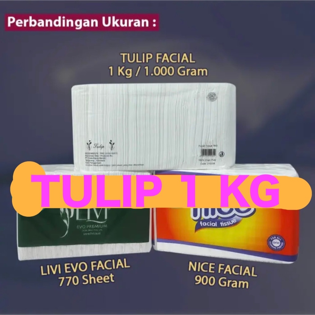 TULIP - Facial Tissue Wajah 1000 gr / 1 KG (2 Ply) /Tisu Wajah TULIP/tissue wajah halus PROMO/TISSUE WAJAH TULIP 1KG