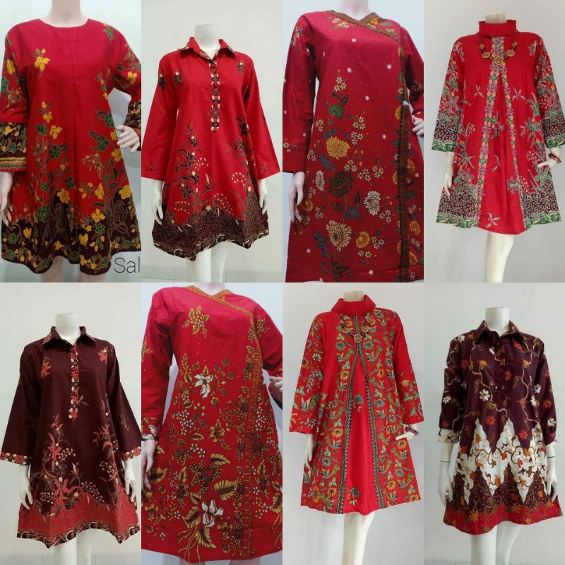 TUNIK BATIK Unggul jaya warna merah maroon LD 105 & LD 120 / Dress seragam Natal