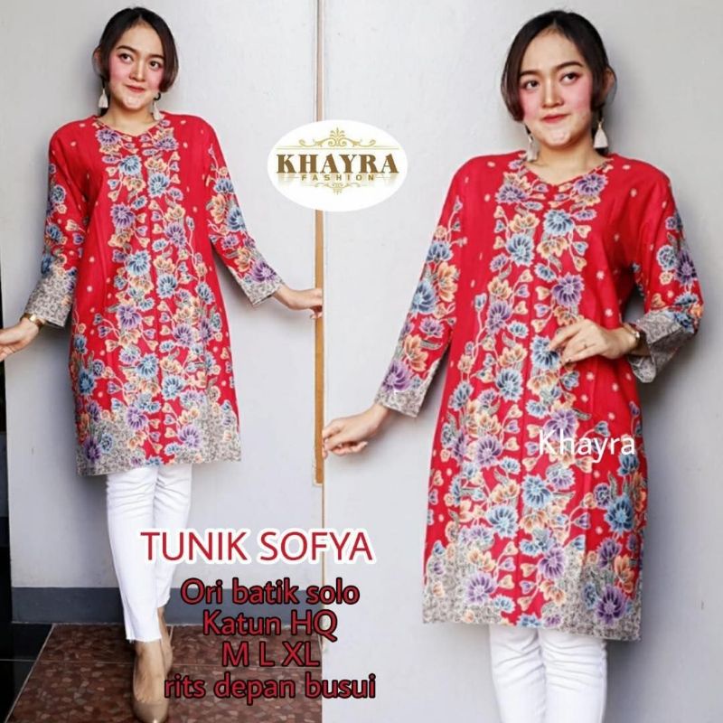 TUNIK BATIK warna merah ungguljaya Allsize Ld 105 Jumbo Ld 120cm / Dress natal