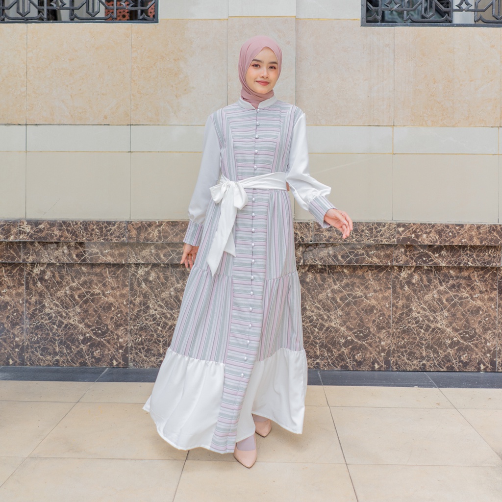 TUNIQUE | Jolie Gamis - RAYA SERIES | Gamis Panjang Wanita Cantik Kekinian Terbaru | Gamis Remaja Dewasa Motif Salur