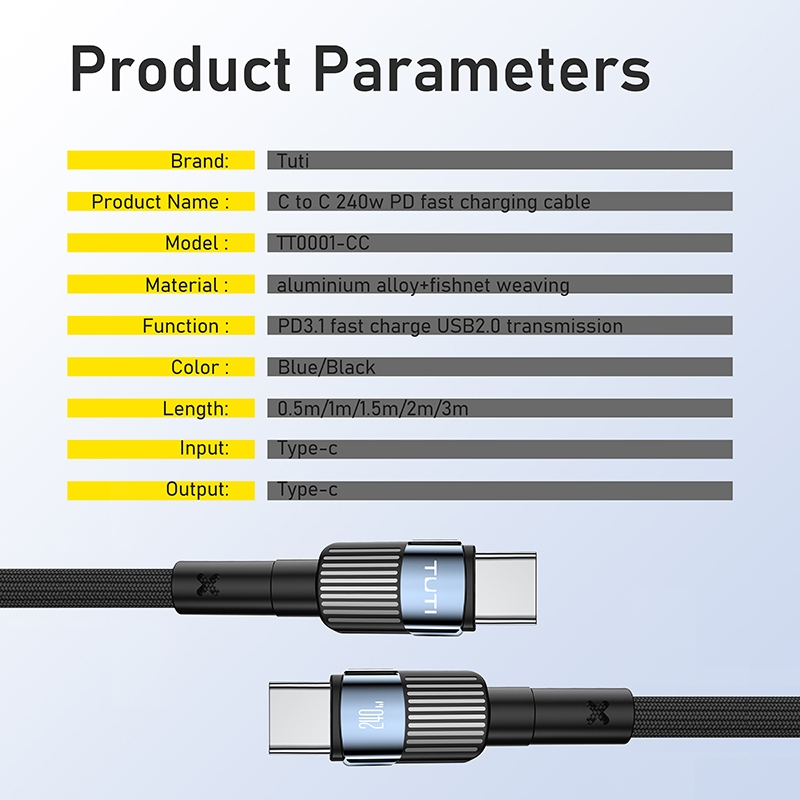 TUTI Kabel Data Type C Fast Charging Type C to Type C 2M Cable PD 3.0 Untuk Ponsel Android Data Cable