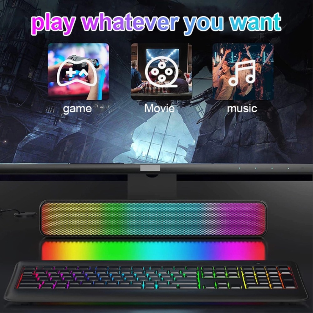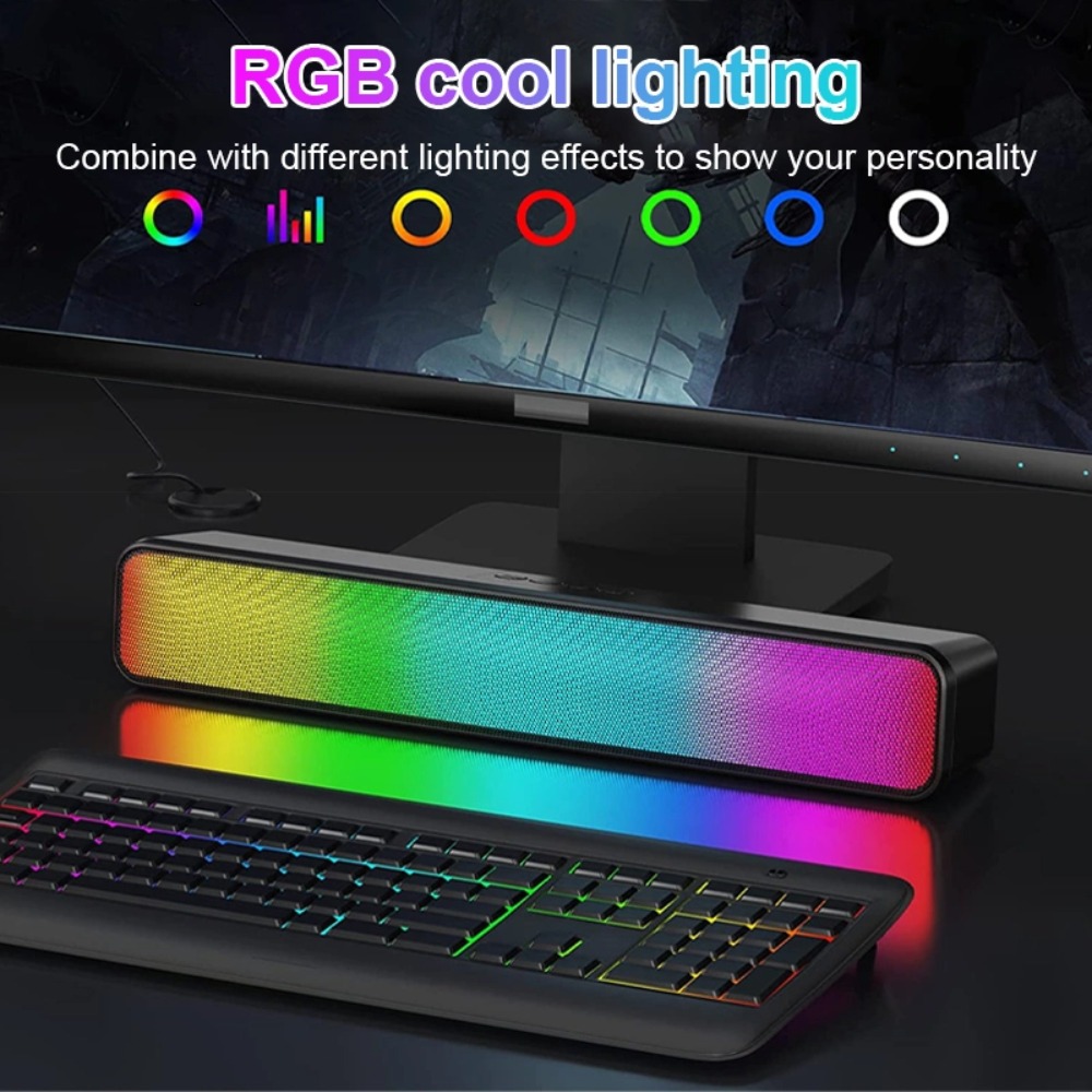TV BASS Soundbar Speaker Super Bass RGB Light FM Radio Mode Wireless Bluetooth 5.3 Smart TV Laptop PC
