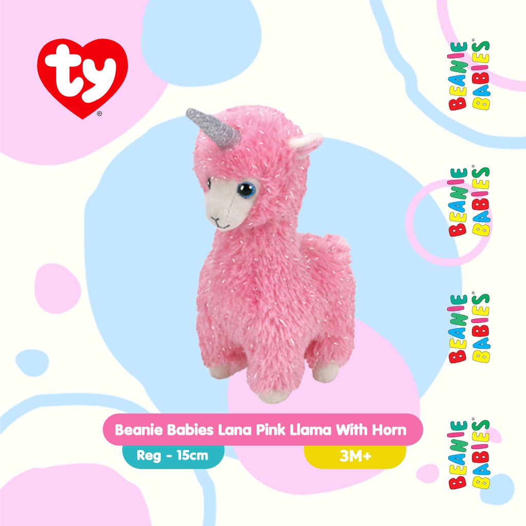 TY Beanie Babies Lana Pink Llama With Horn (Regular) - Boneka Llama