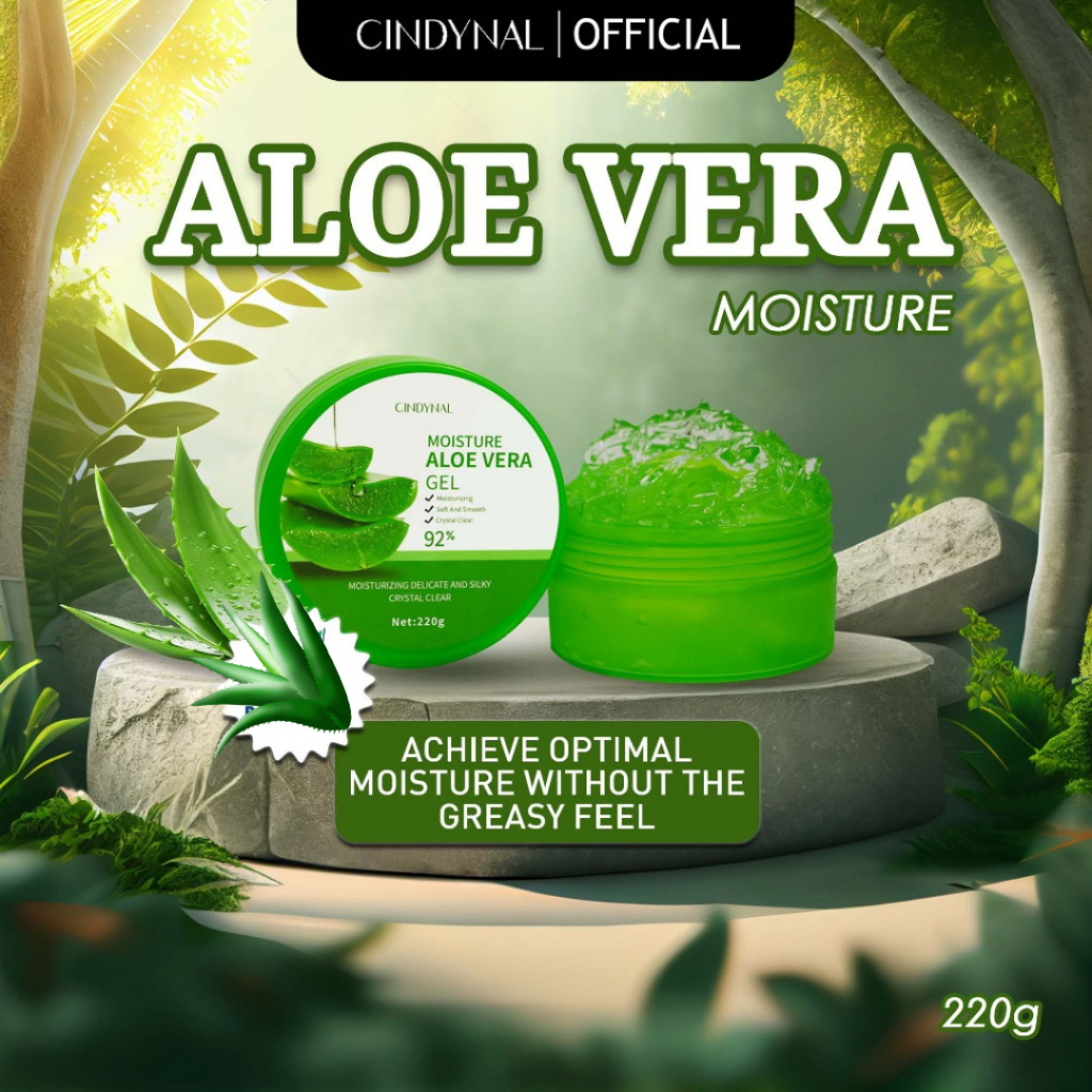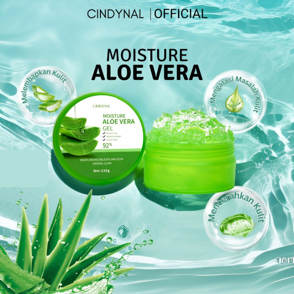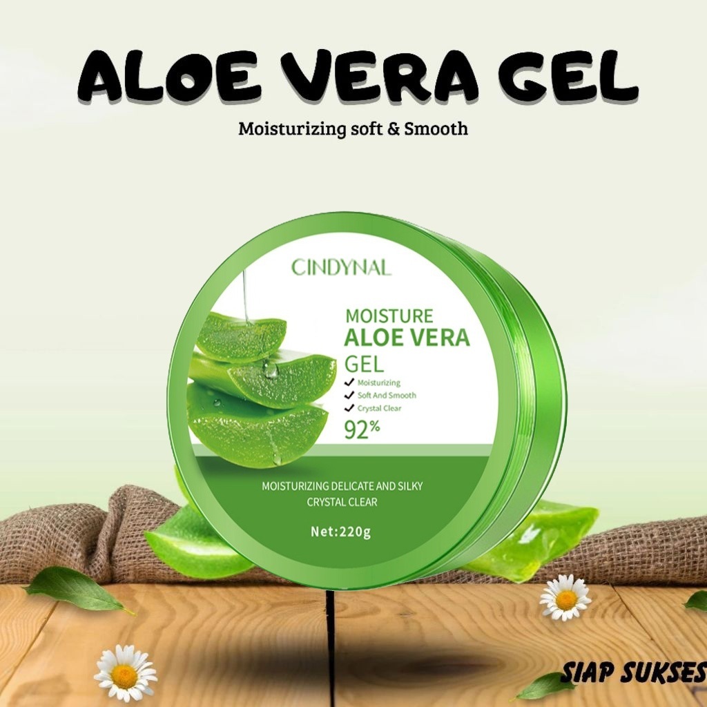 Moisturizer CINDYNAL | Aloe Vera 92% Soothing Gel 220g – Gel Lidah Buaya Natural untuk Pelembap & Masker Wajah