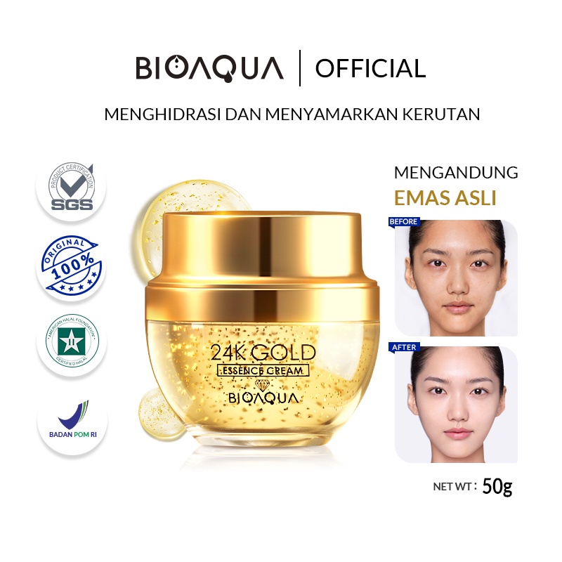 BIOAQUA 24K Gold Skin Care Essence Cream Day Cream Night Cream Brighty Moisturizer Wajah Glowing Krim Malam