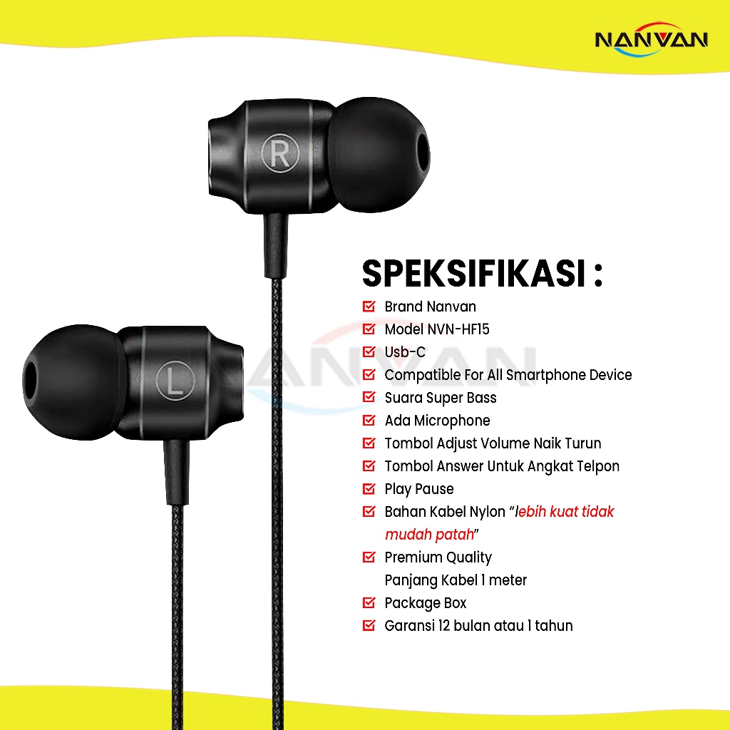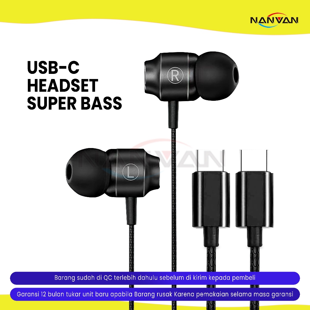 NANVAN NVN-HF15 Headset/Earphone Type-C Super Bass Premium Quality For Handphone Smartphone