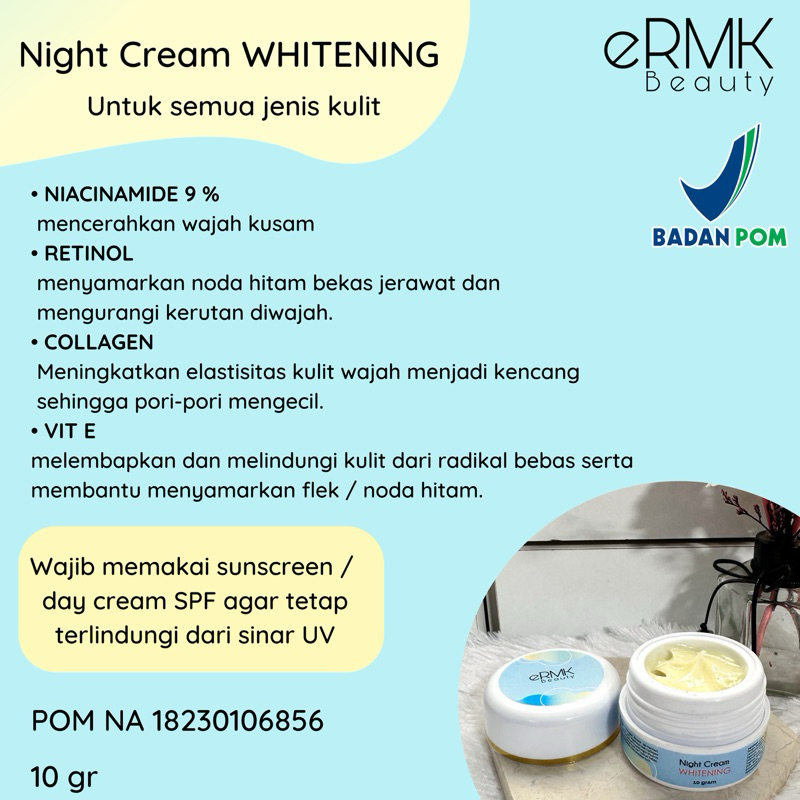 BPOM night cream whitening ERMK BEAUTY night retinol cream pemutih glowing ermk rmk