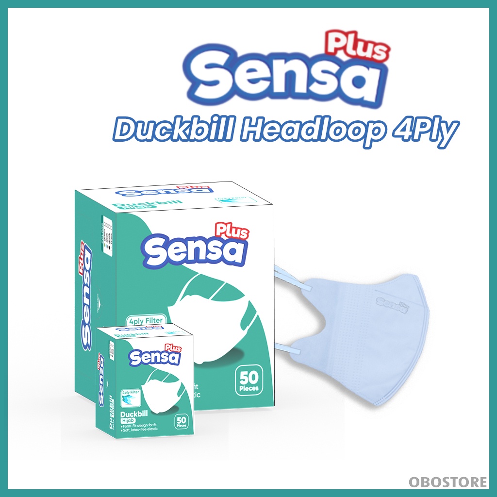 Masker Duckbill 4ply Sensa Plus Hijab Headloop 4ply 50pcs