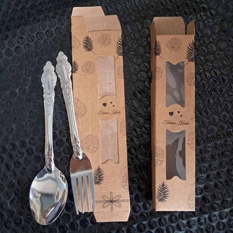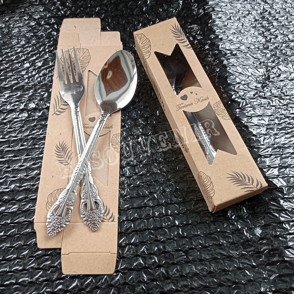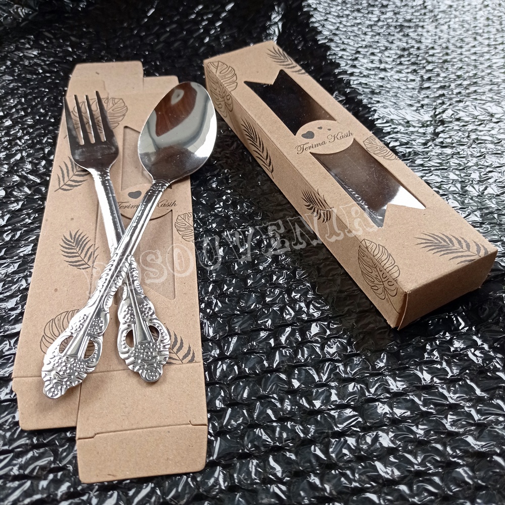 Souvenir Sendok Garpu wayang Stainless Box lembaran souvenir pernikahan