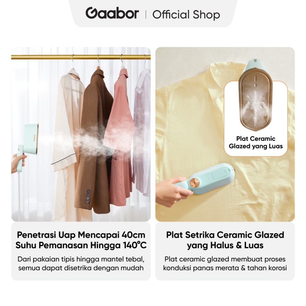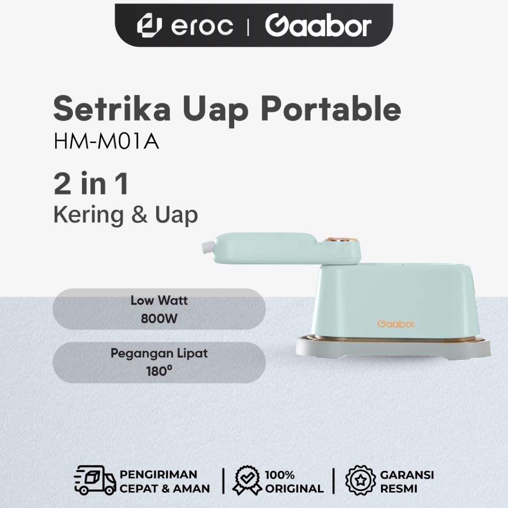 Gaabor Setrika Uap Lipat Mini Travel 2in1 Low Watt 800W Multifungsi Portable Steam Iron / HM-M01A