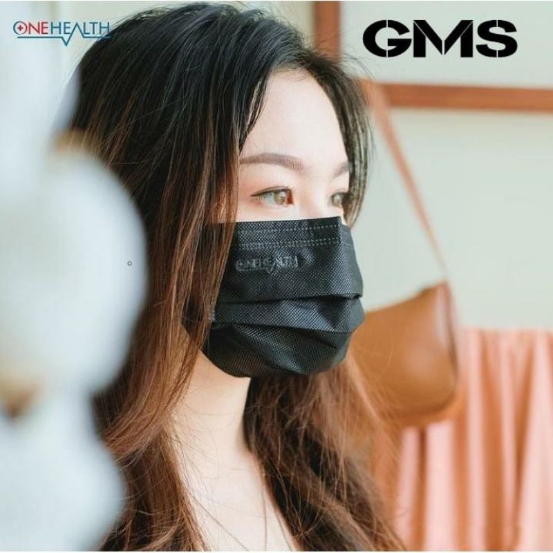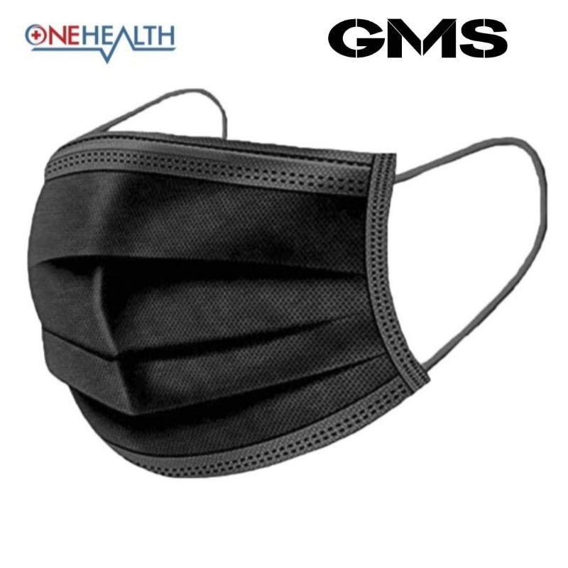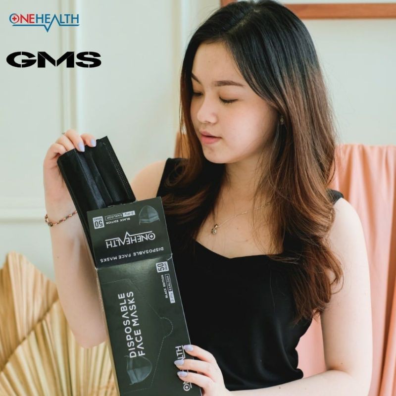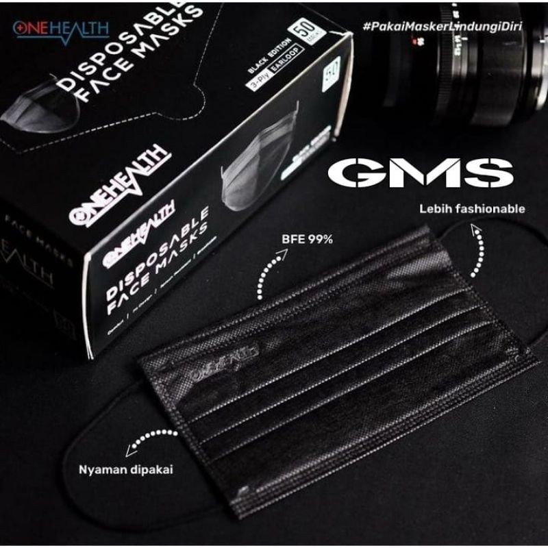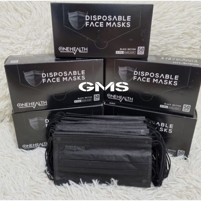 ONEHEALTH Masker 3 Ply Earloop Black Edition Per Box isi 50 Pcs / Disposable Face Mask Black