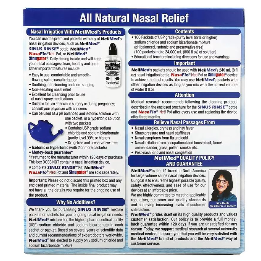 Neilmed Sinus Rinse packs premix 100 pc cuci hidung sinusitis Terapi Sinus Neilmed Premix