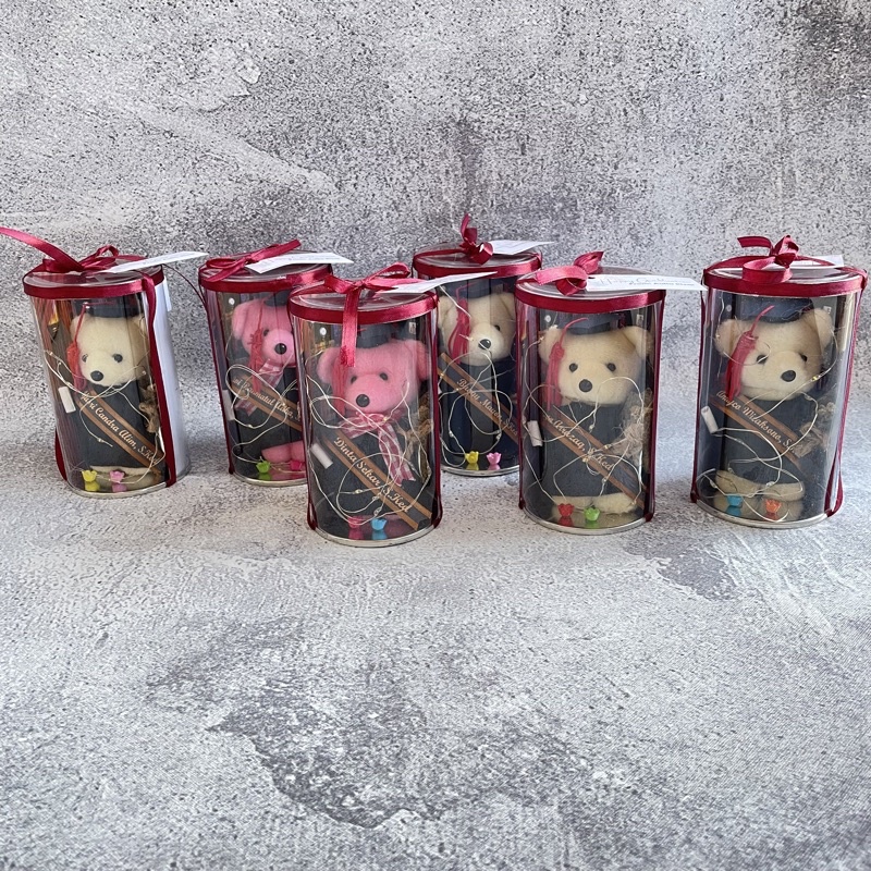 Tabung Boneka Mini + Bunga / Hadiah Wisuda / Gift Wisuda Lucu