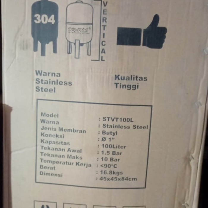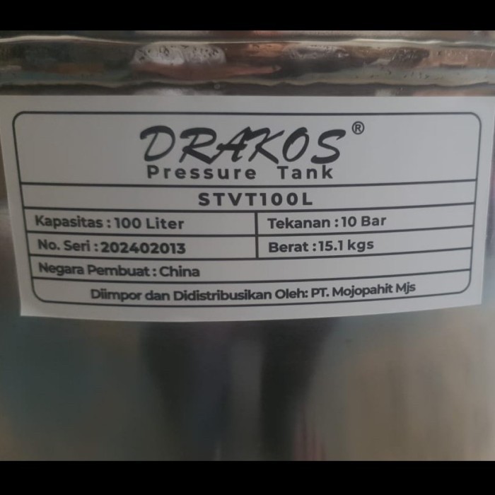 Tabung Stenlis steel PRESSURE TANK 100 LITER STAINLESS STEEL DRAKOS STVT 100 L POMPA AIR Tabung Depo Air Minum Pressure Tank Tandon 100 liter