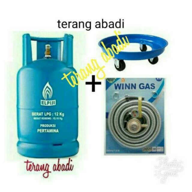 Tabung gas elpiji 12kg+isi+selang paket winn+roda gas besi