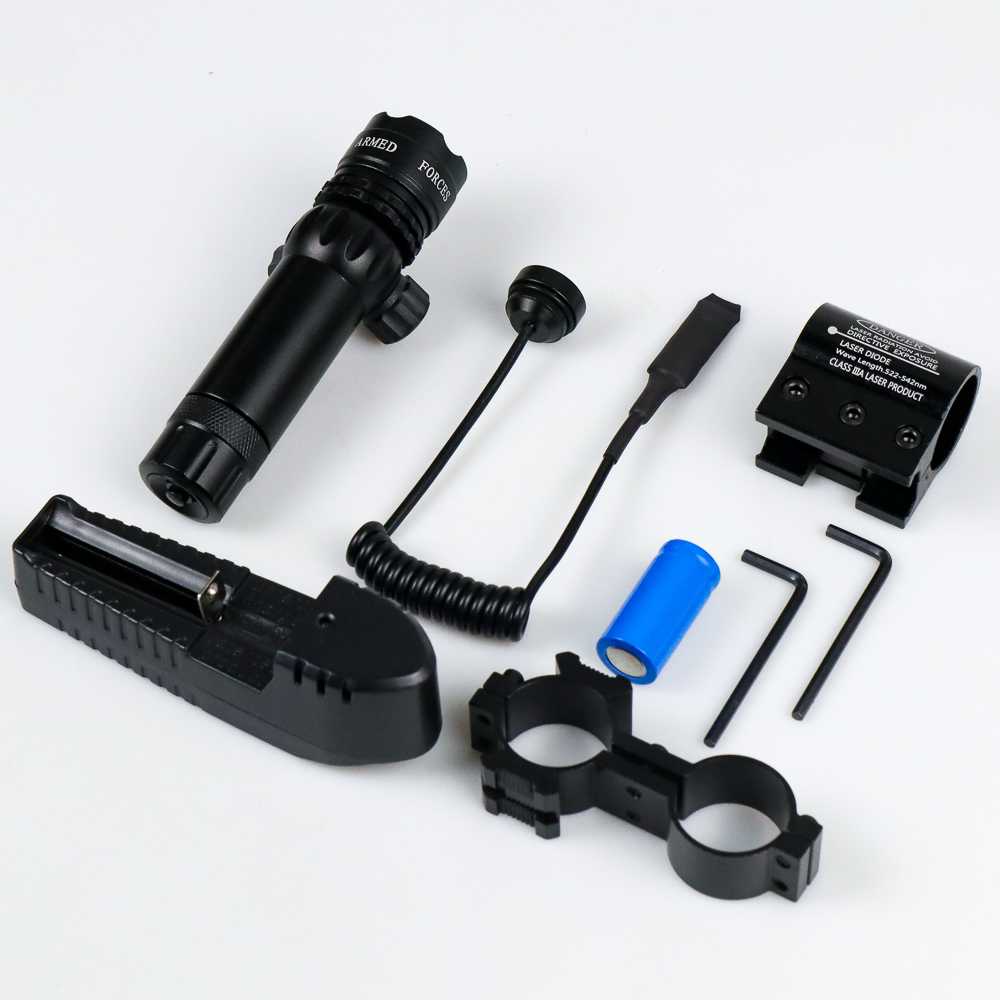 Tactical Green Dot Laser Scope Mount+Baterai+Charger / Laser Leser Nyala Warna Hijau Dot Tactical Sight Scope Teleskop Bunshell Titik Tembak Senapan Angin Siang Malam Jarak Jauh 20Km Pcp Berburu Carger Cas Casan Baterai Anti Getar Airsoft Murah Original