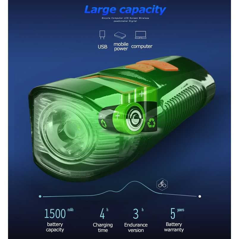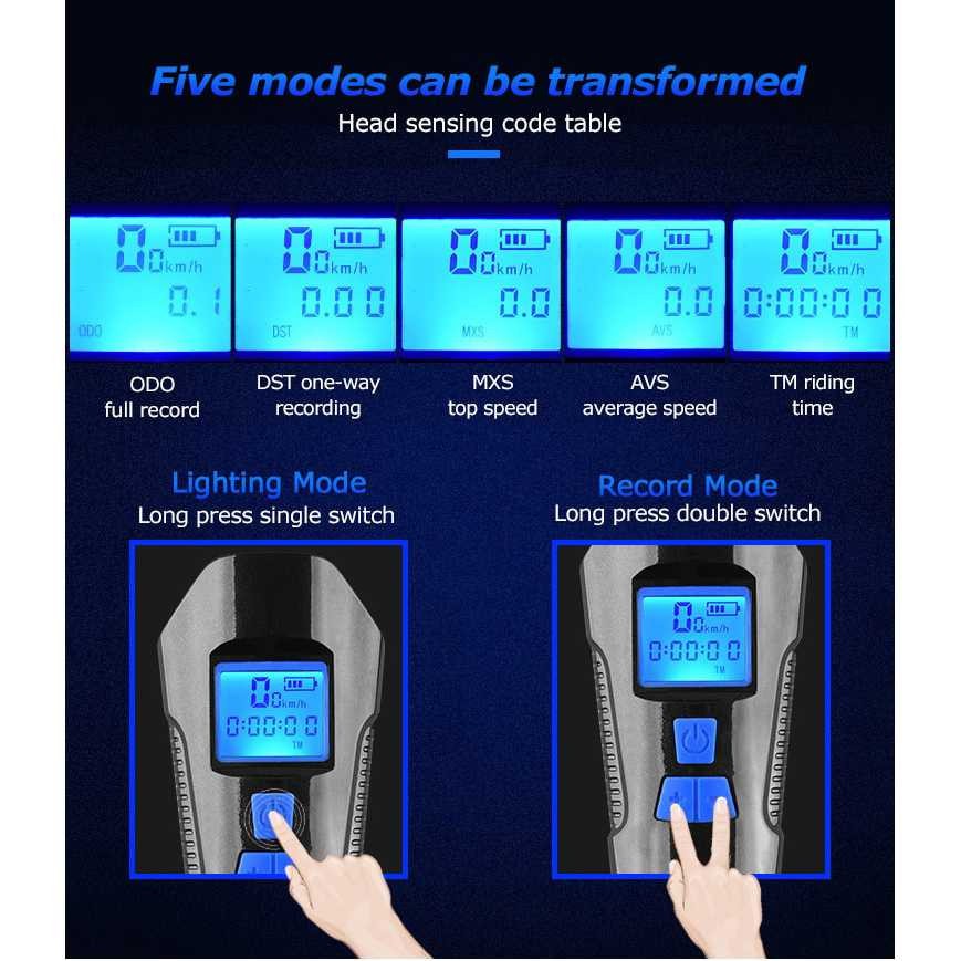 TaffSPORT Lampu Klakson Sepeda LCD Waterproof+Speedometer XA-585