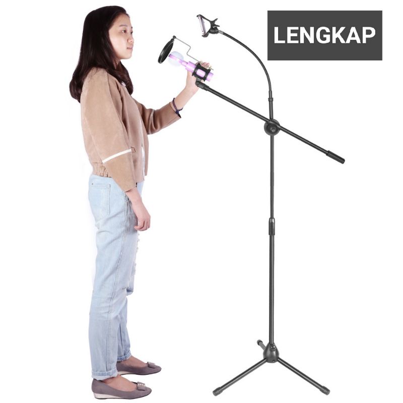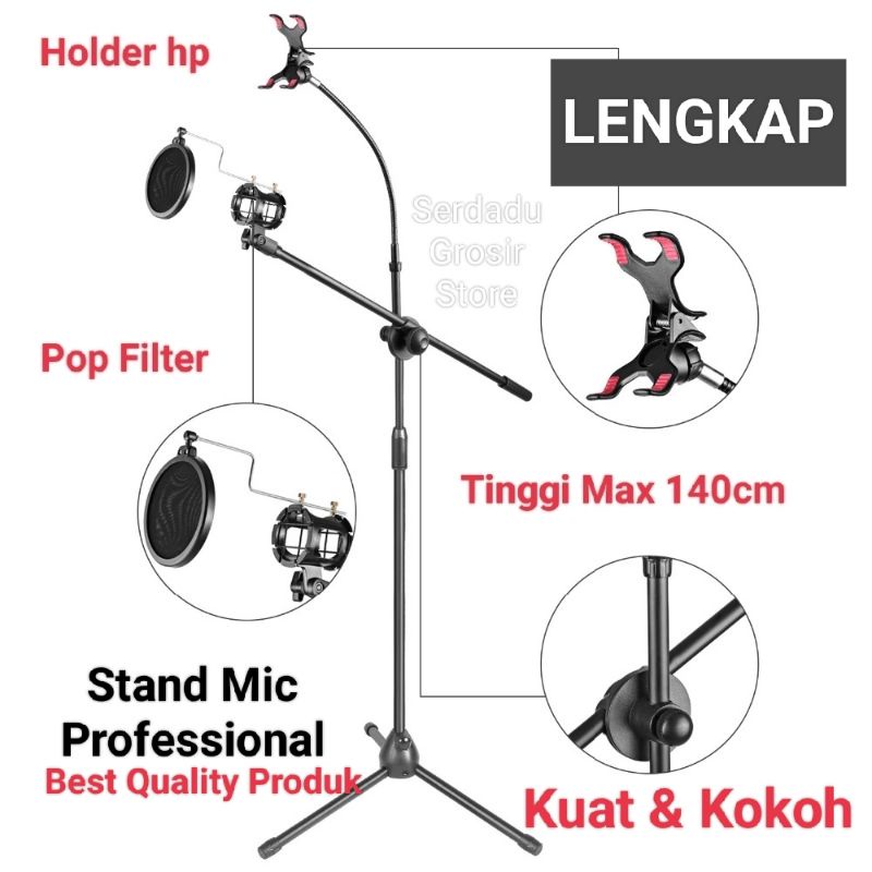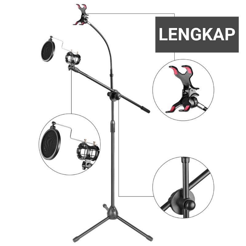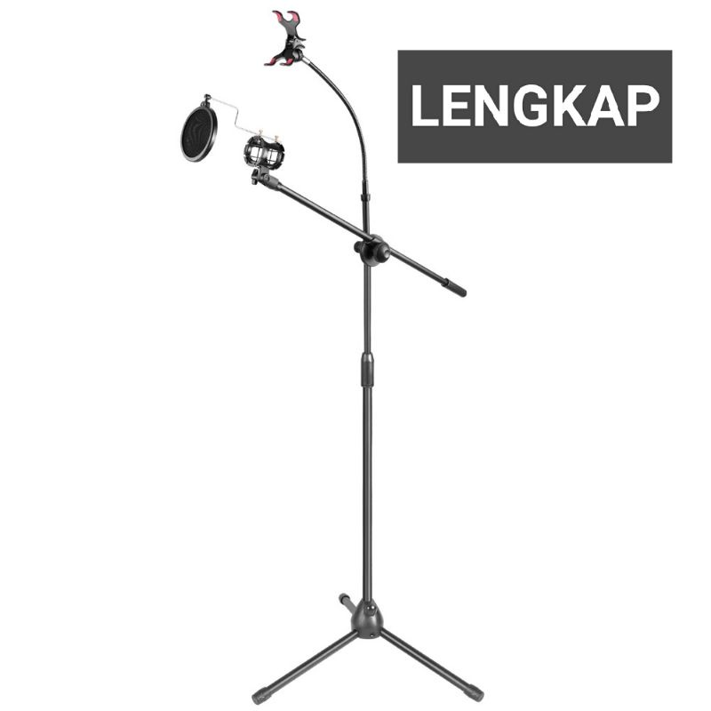 TaffSTUDIO Stand Mic Professional Dengan Holder Hp & Pop Filter