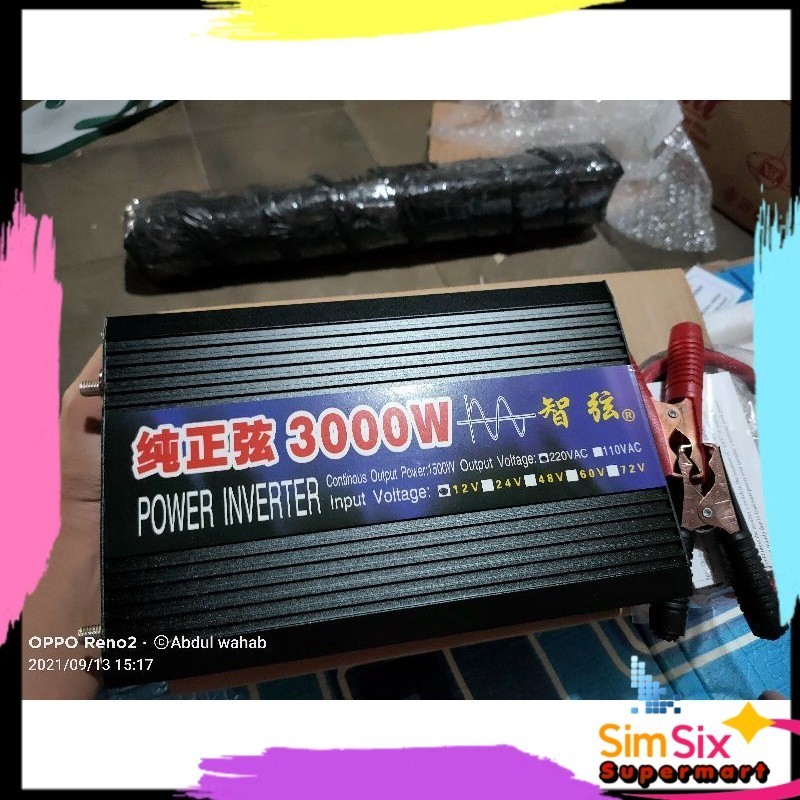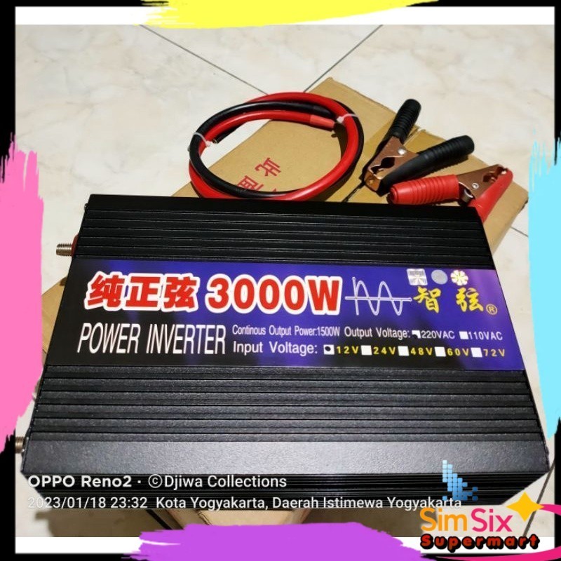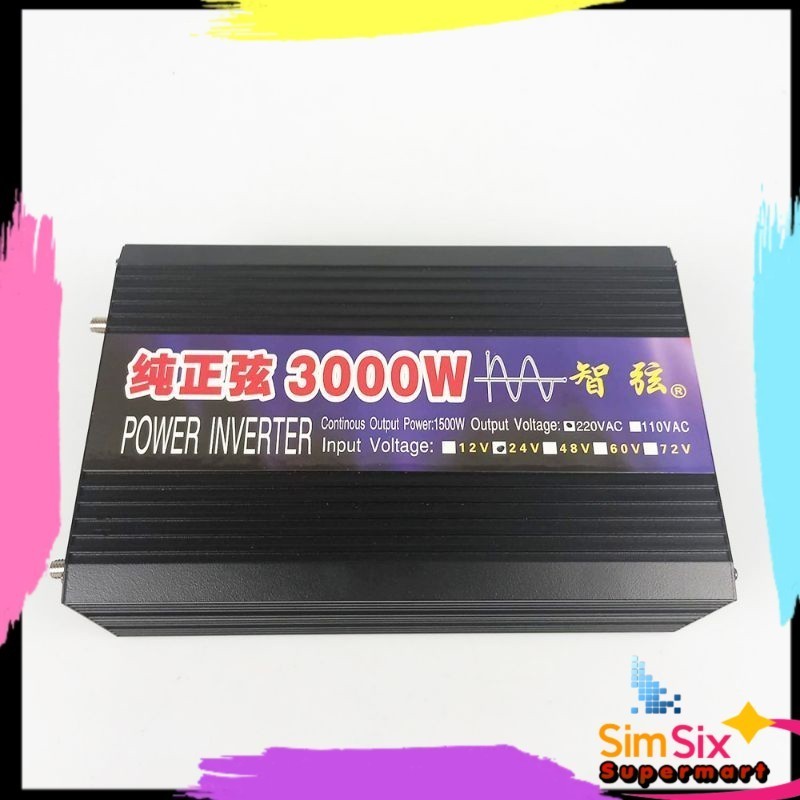 Taffware Car Power Inverter Pure Sine Wave DC 12V 24V to AC220V Sunyima Pure Sine Wave 3000 Watt, Inverter PSW Elektronik DC 12 & DC 24 Volt to Listrik 220 Volt