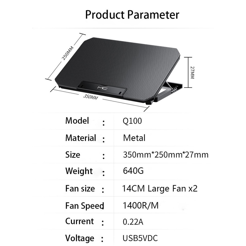 Taffware MC Cooling Pad Fan Cooler Pad Notebook Laptop 2 Fan Fixed Speed Q100