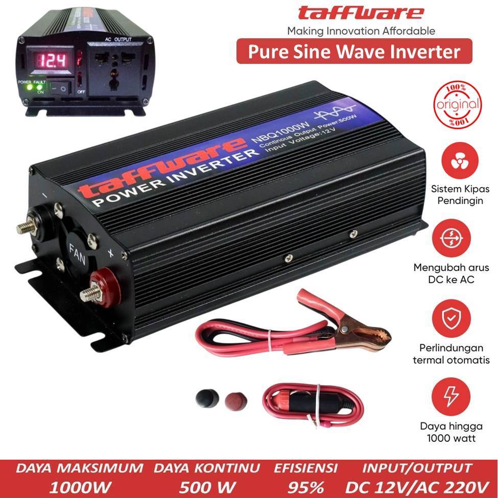 Taffware Power Inverter Pure Sine Wave DC 12V To AC 220V 1000W